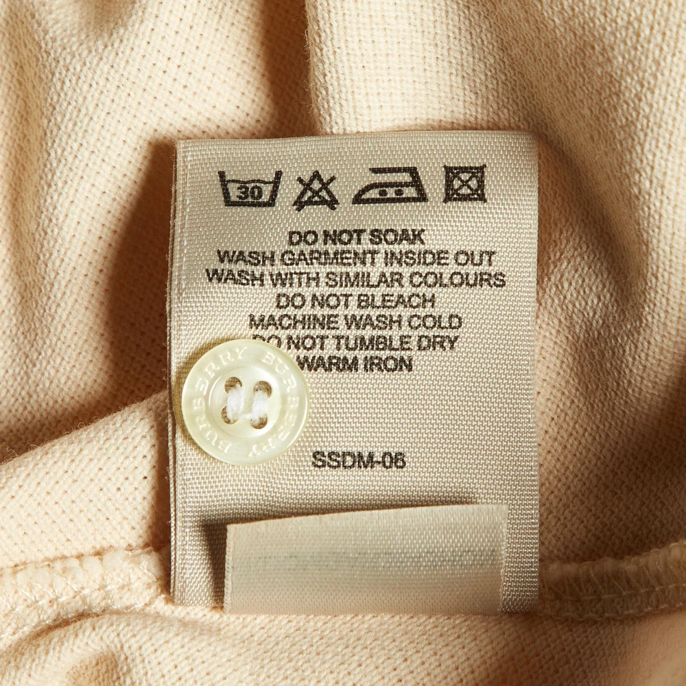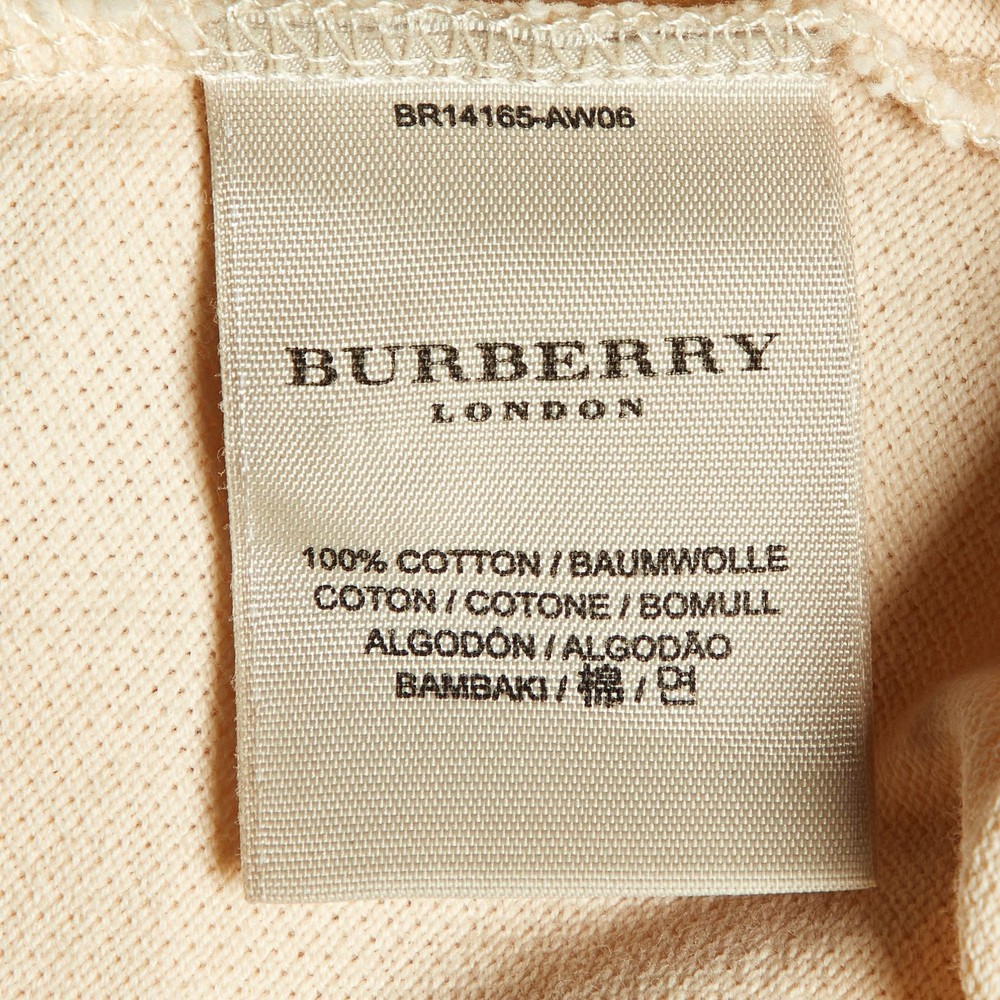 This Burberry London polo t shirt is crafted from soft cream cotton pique, offering a lightweight and breathable feel for all day comfort. The classic design features a buttoned placket and a subtly embroidered Burberry logo, adding a touch of refined sophistication.Certified by The Luxury Closet - This item has gone through a detailed authentication process overseen by our experts. We offer a lifetime guarantee of authenticity on all our items. Import duties, taxes and charges are not included in the item price. These charges are the buyers responsibility. Please check with your country’s customs office to determine what these additional cost will be prior to buying. Our eBay Store About Us Contact Us Add to Favorite Sellers Burberry London Cream Cotton Pique Polo T-Shirt L $135.3 This Burberry London polo t shirt is crafted from soft cream cotton pique, offering a lightweight and breathable feel for all day comfort. The classic design features a buttoned placket and a subtly embroidered Burberry logo, adding a touch of refined sophistication. Product Details Brand Color Cream Dimensions Material Cotton Knit Size L Outsole Width Outsole Length Heel Height Includes The Luxury Closet Packaging Certified by The Luxury Closet This item has gone through a detailed authentication process overseen by our experts. We offer a lifetime guarantee of authenticity on all our items. How We Check The in-house team of experts at The Luxury Closet is highly trained to verify the authenticity and the condition of the luxury products. They ensure that only 100% authentic items are put on sale.The evaluation process is unique with its own mix of assessment criteria and differs according to the category. Each item is evaluated based on the following combination of hallmarks, hardware, stitching, symmetry, material, craftsmanship, stamping, codes, hologram stickers, and packaging. Our authenticators also check if the items have been modified or amended (e.g., aftermarket diamonds, replaced batteries, repaired bags, etc.) International Buyers Import duties, taxes and charges are not included in the item price. These charges are the buyers responsibility. Please check with your country’s customs office to determine what these additional cost will be prior to buying.