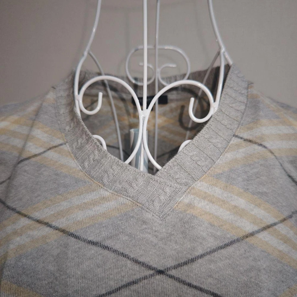 Burberry London Gray Black White Sweater Size 4 Stylish Design New Key Features **Burberry London Gray Sweater** - **Brand**: Burberry London - **Product Type**: Sweater - **Size**: 4 - **Color**: Gray - **Material**: - Main: 100% Cotton - Side Panels: 95% Cotton, 5% Polyurethane - Collar and Cuffs: 93% Cotton, 5% Nylon, 2% Polyurethane - **Dimensions**: - Shoulder Width: 39 cm - Chest Width: 49 cm - Length: 49 cm - Sleeve Length: 44 cm - **Condition**: - Gently used with no noticeable stains or fraying. Please understand this is a pre-owned item. - **Design**: Stylish and versatile, suitable for casual occasions. Features a V-neck and check pattern. - **Seasonality**: Ideal for spring, autumn, and winter Specifications Brand Burberry London Country Japan Product Description Item Title Stylish Burberry London Gray Black White Sweater Size 4 Payment Supports managed payments Please pay within 5 days after auction is finished. About Us We are located in Japan. It's our pleasure to make you happy by proposing our recommend item. If you have any questions or request about items, please feel free to ask us. International Buyers - Please Note: -Import duties, taxes, and charges are not included in the item price or shipping charges. These charges are the buyer's responsibility. -Please check with your country's customs office to determine what these additional costs will be prior to bidding/buying. -These charges are normally collected by the delivering freight (shipping) company or when you pick the item up - do not confuse them for additional shipping charges. -We do not mark merchandise values below value or mark items as - gifts - The US and International government regulations prohibit such behavior. Thank you for your understanding.