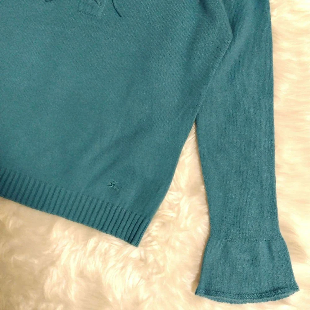 Burberry London Knit Sweater Long Sleeve M Cashmere 70% Blue Green Bell Sleeve Key Features **Burberry London Long Sleeve Knit Sweater** - **Brand:** Burberry London - **Product Type:** Long Sleeve Knit Sweater - **Model:** Size 2 (M) **Features:** - **Color:** Blue-green with hints of green - **Material:** 70% Cashmere (check photos for texture) - **Size Measurements:** - Shoulder Width: 37 cm - Chest Width: 47 cm - Length: 53 cm - Sleeve Length: 58 cm - **Design:** Bell sleeve style for a cute look **Condition:** - No visible scratches or stains - Minor pilling typical of knitwear - Please note slight discrepancies in measurements may occur - Wrinkles may be present due to folding *Please refer to the provided photos for additional details.* Specifications Brand Burberry London Country Japan Product Description Item Title Burberry London Knit Sweater Long Sleeve Size 2 M Cashmere 70 Blend Payment Supports managed payments Please pay within 5 days after auction is finished. About Us We are located in Japan. It's our pleasure to make you happy by proposing our recommend item. If you have any questions or request about items, please feel free to ask us. International Buyers - Please Note: -Import duties, taxes, and charges are not included in the item price or shipping charges. These charges are the buyer's responsibility. -Please check with your country's customs office to determine what these additional costs will be prior to bidding/buying. -These charges are normally collected by the delivering freight (shipping) company or when you pick the item up - do not confuse them for additional shipping charges. -We do not mark merchandise values below value or mark items as - gifts - The US and International government regulations prohibit such behavior. Thank you for your understanding.