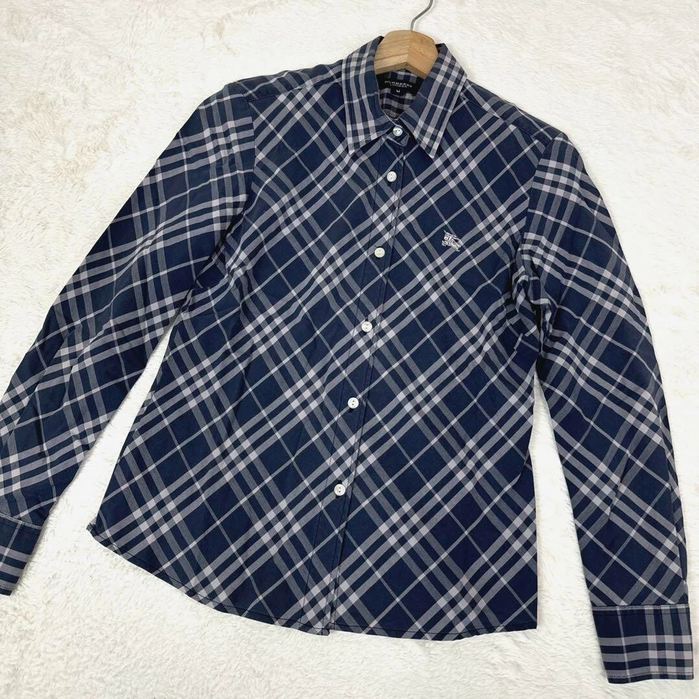 Burberry London Long Sleeve Shirt Blouse Nova Check Cotton Women Size M Used