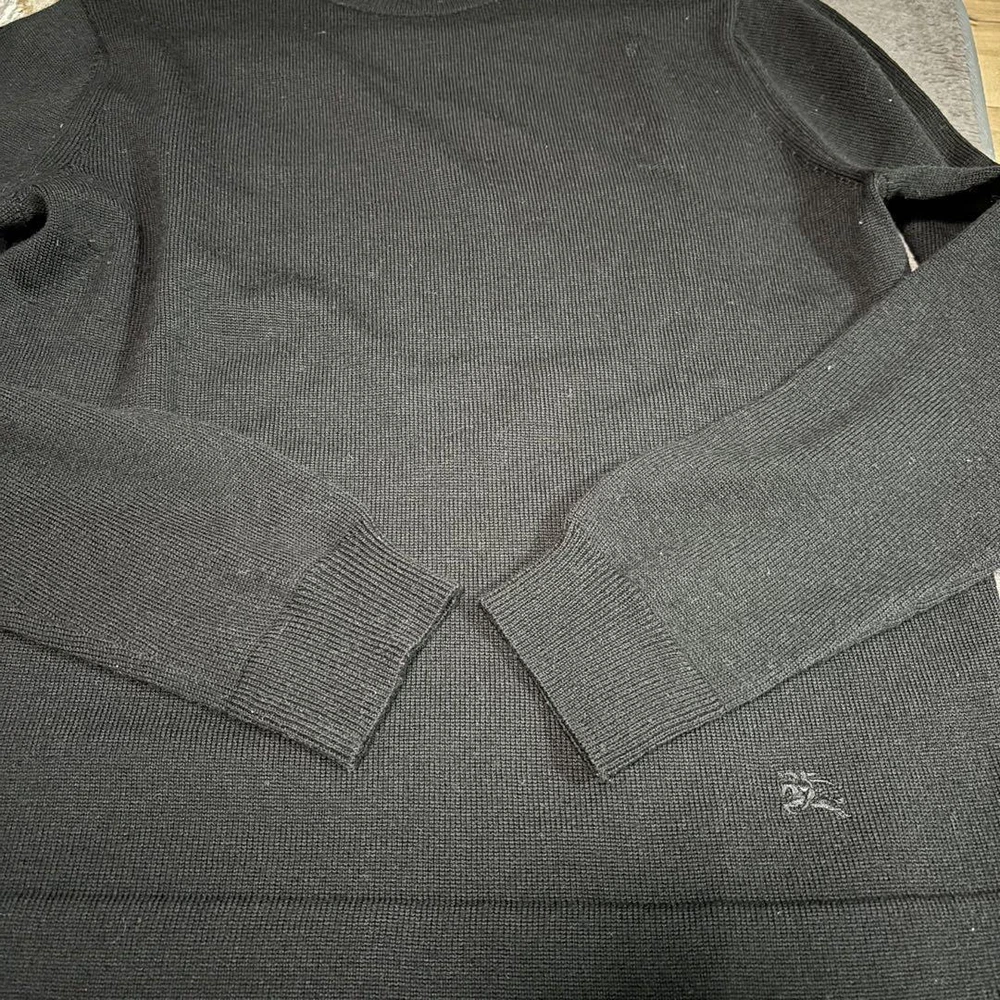 Burberry London Men's Knit Turtleneck Sweater, Horse Logo, Size M, Used Key Features **Burberry London Knit Turtleneck Sweater** - **Brand**: Burberry London - **Product Type**: Long Sleeve Knit Turtleneck Sweater - **Model**: Horse Logo Embroidered - **Size**: M (Size 2) - **Color**: Black **Detailed Features**: - **Material**: 100% Wool - **Measurements** (approx.): - Shoulder Width: 36 cm - Chest Width: 48 cm - Length: 64 cm - Sleeve Length: 58.5 cm - **Condition**: Gently used, no scratches or stains. Please note this is a pre-owned item. This elegant black turtleneck features a subtle horse logo embroidery on the lower left side, making it a sophisticated addition to your wardrobe. It has been cleaned and is ready for wear. Please inquire about any specific concerns before purchasing. Specifications Brand Burberry London Country Japan Product Description Item Title Burberry London Long Sleeve Knit Turtleneck Payment Supports managed payments Please pay within 5 days after auction is finished. About Us We are located in Japan. It's our pleasure to make you happy by proposing our recommend item. If you have any questions or request about items, please feel free to ask us. International Buyers - Please Note: -Import duties, taxes, and charges are not included in the item price or shipping charges. These charges are the buyer's responsibility. -Please check with your country's customs office to determine what these additional costs will be prior to bidding/buying. -These charges are normally collected by the delivering freight (shipping) company or when you pick the item up - do not confuse them for additional shipping charges. -We do not mark merchandise values below value or mark items as - gifts - The US and International government regulations prohibit such behavior. Thank you for your understanding.