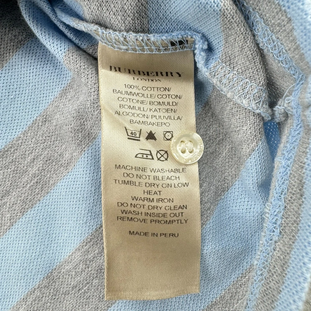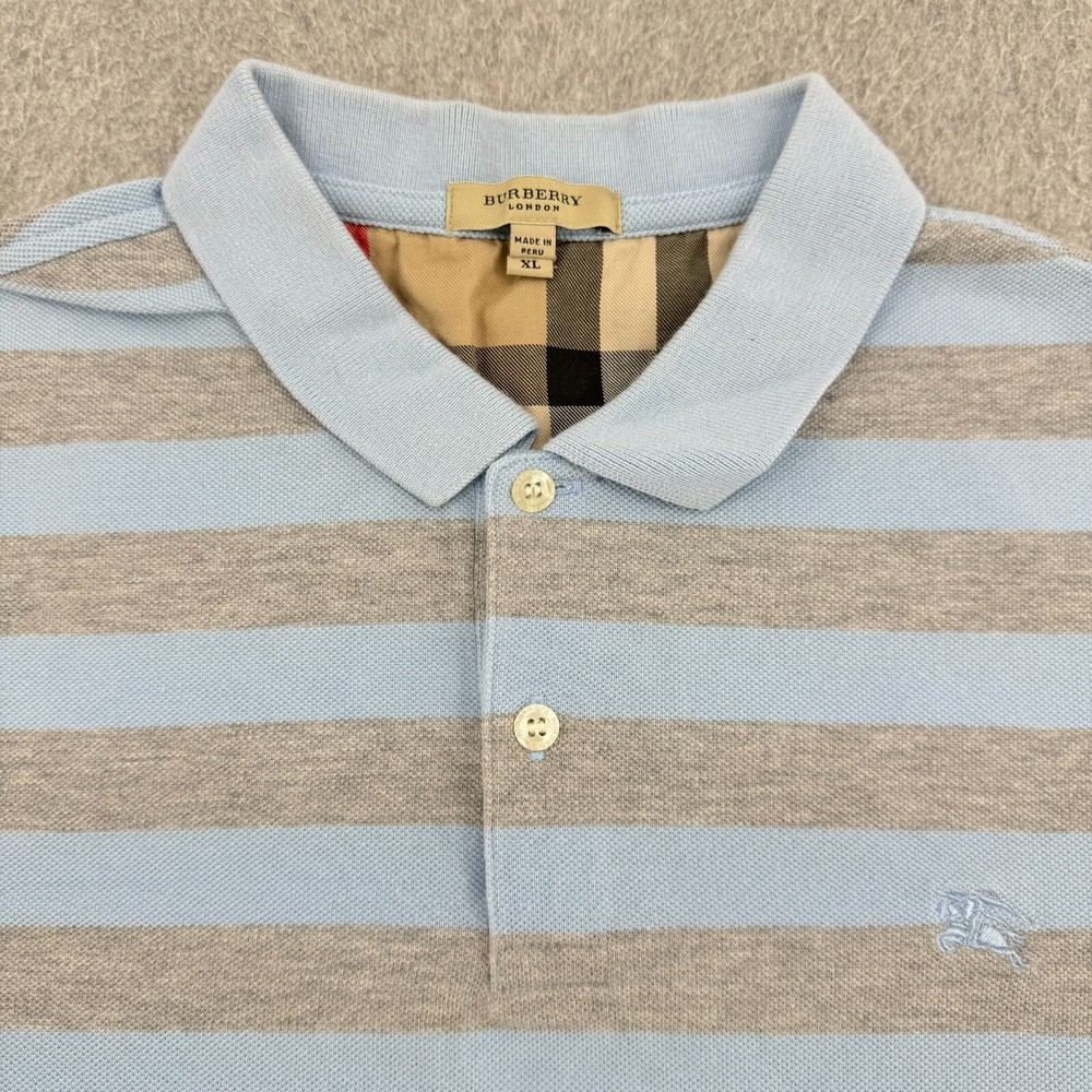 Burberry London Shirt Mens XL Blue Gray Stripe Short Sleeve Nova Plaid Trim Logo Item: The photos provided depict the actual item you will receive. Any defects or spots will be clearly shown in the photos. Shipping: We offer fast and reliable shipping! All orders will be provided with a tracking number to ensure that your item arrives promptly. Return Policy: 30-day hassle-free returns. See our return policies for details. Feel free to reach out to us through eBay with any questions!