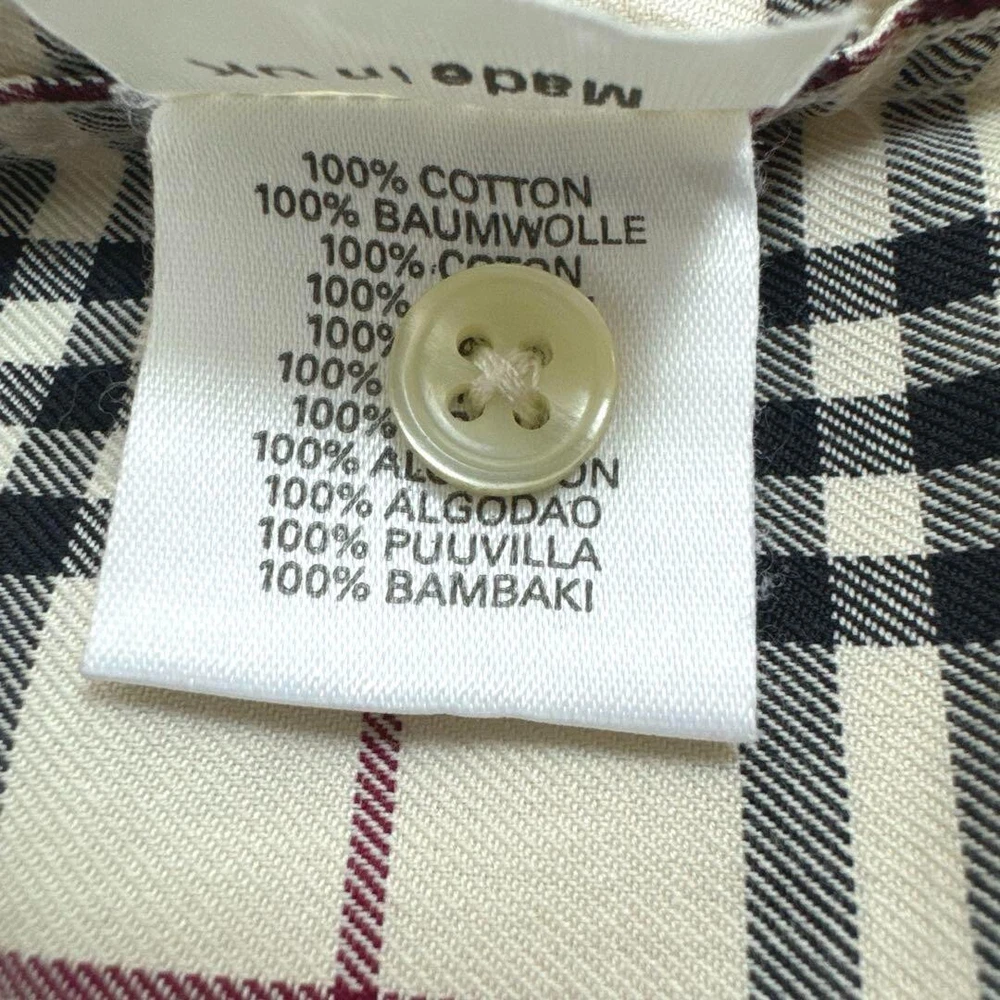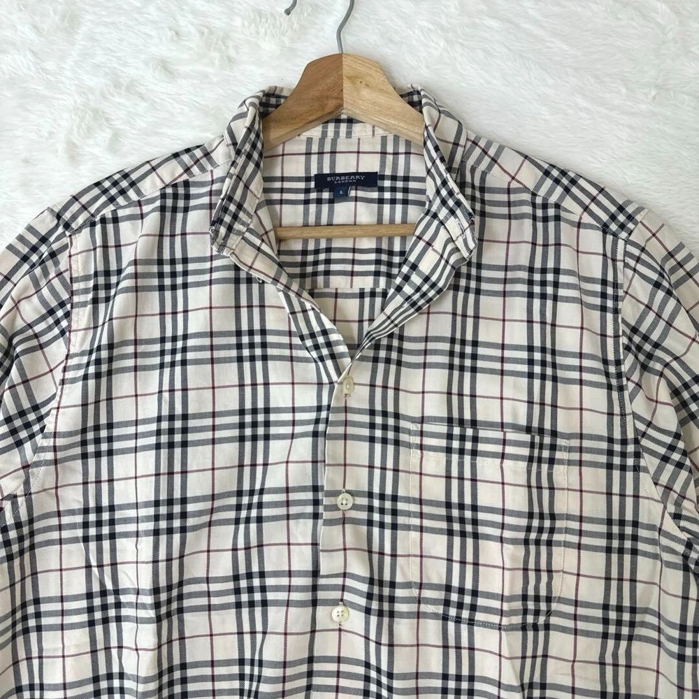 Season: Fall, Spring, Summer Product Line: NA Model: NA MPN: NA Size Type: Regular Chest Size: 43.3 in Character: NA Theme: NA Handmade: No Department: Men Features: Pockets Material: NA Pattern: Check gtin13: Does not apply Sleeve Length: Short Sleeve Neckline: Collared Personalize: No Accents: Button Size: L UPC: Does not apply Closure: Button Fabric Type: NA Collar Style: Button-Down Color: Beige Fit: Slim Brand: Burberry London Occasion: Business, Casual, Travel Type: Button-Up Vintage: No Garment Care: NA