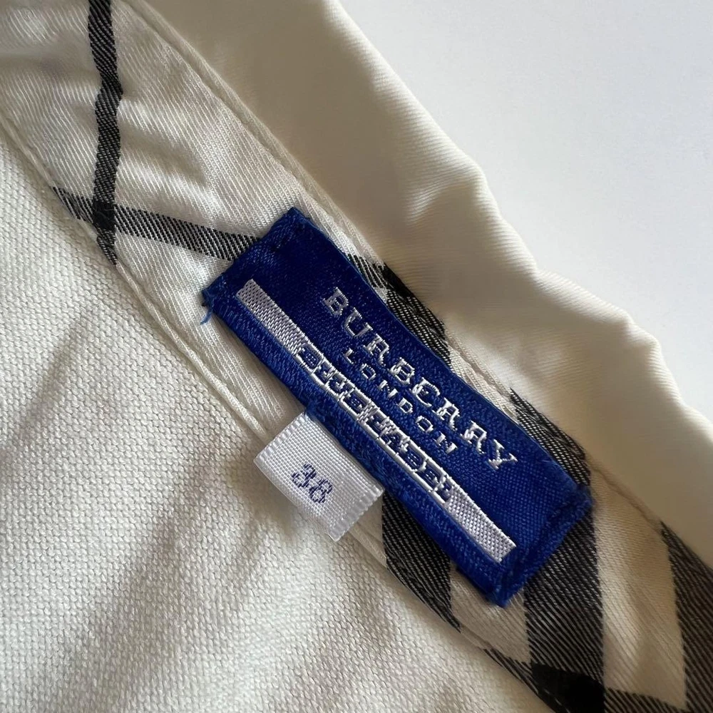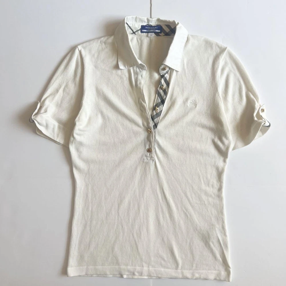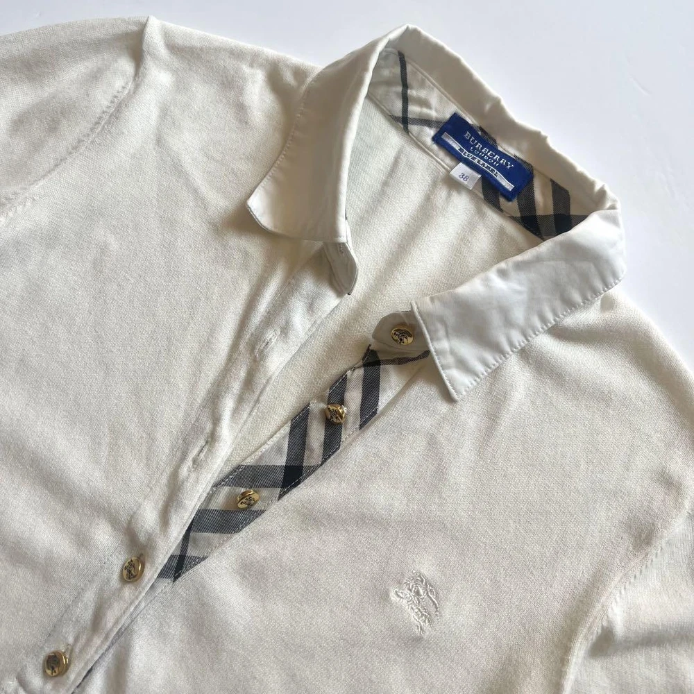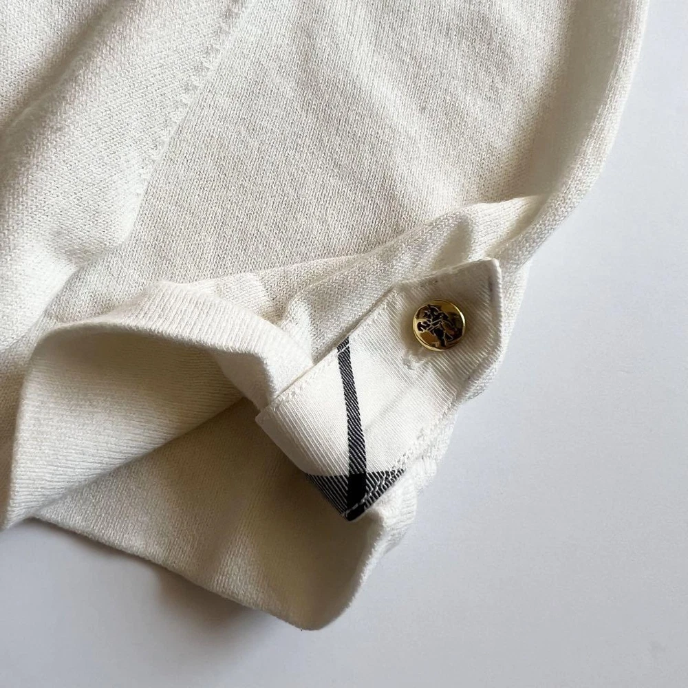 Burberry London Nova Plaid Knit Short Sleeve Sweater Off-White Women's M AB Key Features **Burberry London Summer Knit Sweater** - **Brand:** Burberry London - **Product Type:** Summer Knit Sweater - **Model:** Nova Check Pattern, Short Sleeve - **Size:** 38 (M) - **Color:** Off-White - **Material:** Knit - **Dimensions:** - Shoulder Width: 37 cm - Bust Width: 43 cm - Length: 59.5 cm - Sleeve Length: 21.5 cm - **Condition:** AB Rank - Minor scratches present, but no noticeable stains or significant damage. Overall, in great condition. This authentic Burberry sweater features a stylish Nova Check design, perfect for summer wear. Ideal for those who appreciate luxury fashion with a vintage touch. Specifications Brand Burberry London Country Japan Product Description Item Title Burberry London Short Sleeve Sweater Knit Nova Plaid Pattern Payment Supports managed payments Please pay within 5 days after auction is finished. About Us We are located in Japan. It's our pleasure to make you happy by proposing our recommend item. If you have any questions or request about items, please feel free to ask us. International Buyers - Please Note: -Import duties, taxes, and charges are not included in the item price or shipping charges. These charges are the buyer's responsibility. -Please check with your country's customs office to determine what these additional costs will be prior to bidding/buying. -These charges are normally collected by the delivering freight (shipping) company or when you pick the item up - do not confuse them for additional shipping charges. -We do not mark merchandise values below value or mark items as - gifts - The US and International government regulations prohibit such behavior. Thank you for your understanding.