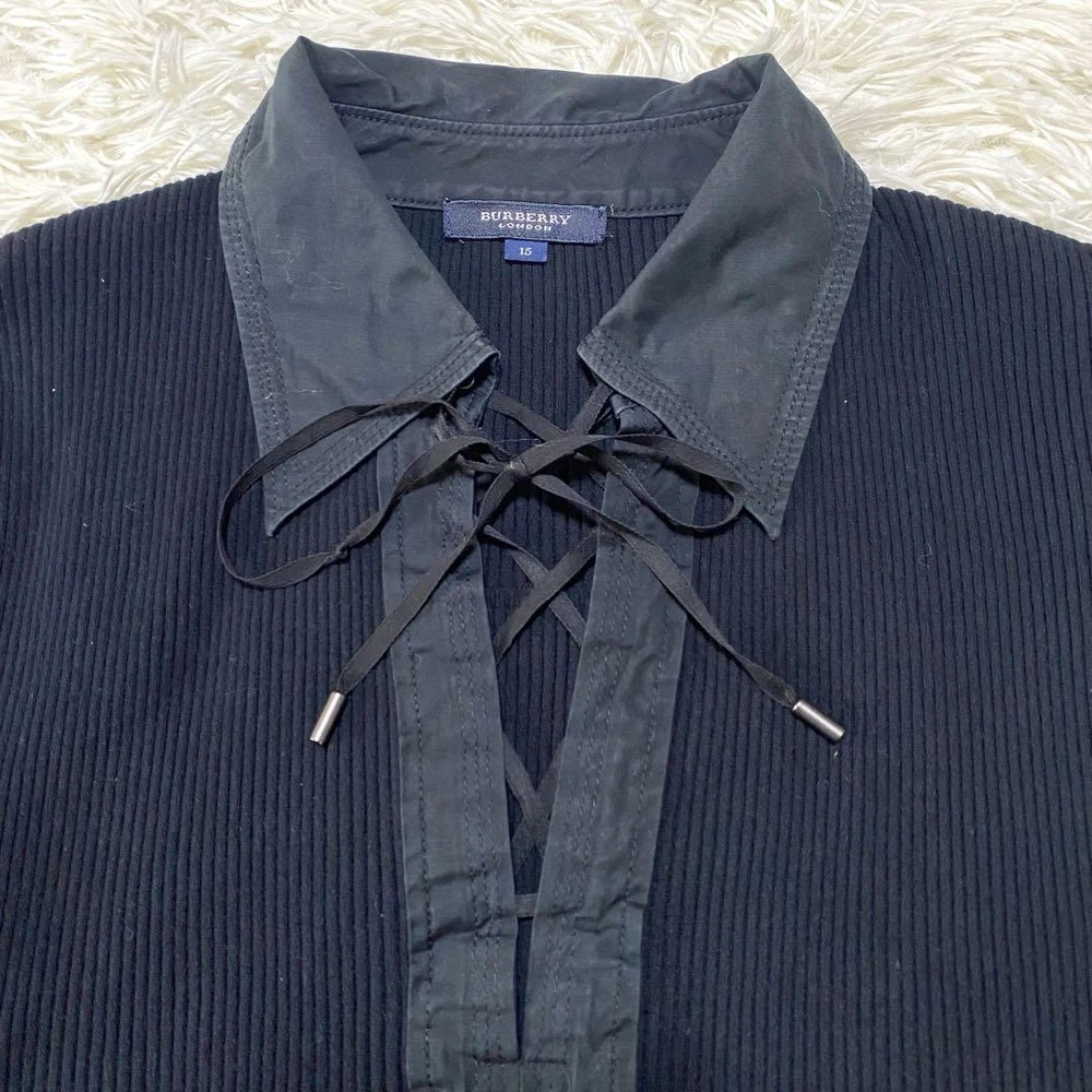 Burberry London Rib Knit Long Sleeve Top Shirt Size 15 Black 2XL Key Features **BURBERRY LONDON Rib Knit Top** - **Brand:** BURBERRY LONDON - **Product Type:** Knit Shirt - **Model:** Rib Knit Long Sleeve Top - **Size:** 2XL (15号) - Shoulder Width: 36 cm - Chest Width: 41 cm - Sleeve Length: 55 cm - Length: 54 cm - **Color:** Black - **Material:** Mixed materials with ribbed texture - **Features:** - Relaxed fit - Lace-up design - Stretchable fabric - **Condition:** - Pre-owned with minor discoloration in mixed material areas - No noticeable scratches or stains - Please note this is a used item; purchase only if you understand this condition. *Please refer to measurements as this item may fit slightly smaller than typical XL sizes.* Specifications Brand Burberry London Country Japan Product Description Item Title Burberry London Rib Knit Tops Long Sleeve Shirt Ribbon No. 15 Black Payment Supports managed payments Please pay within 5 days after auction is finished. About Us We are located in Japan. It's our pleasure to make you happy by proposing our recommend item. If you have any questions or request about items, please feel free to ask us. International Buyers - Please Note: -Import duties, taxes, and charges are not included in the item price or shipping charges. These charges are the buyer's responsibility. -Please check with your country's customs office to determine what these additional costs will be prior to bidding/buying. -These charges are normally collected by the delivering freight (shipping) company or when you pick the item up - do not confuse them for additional shipping charges. -We do not mark merchandise values below value or mark items as - gifts - The US and International government regulations prohibit such behavior. Thank you for your understanding.