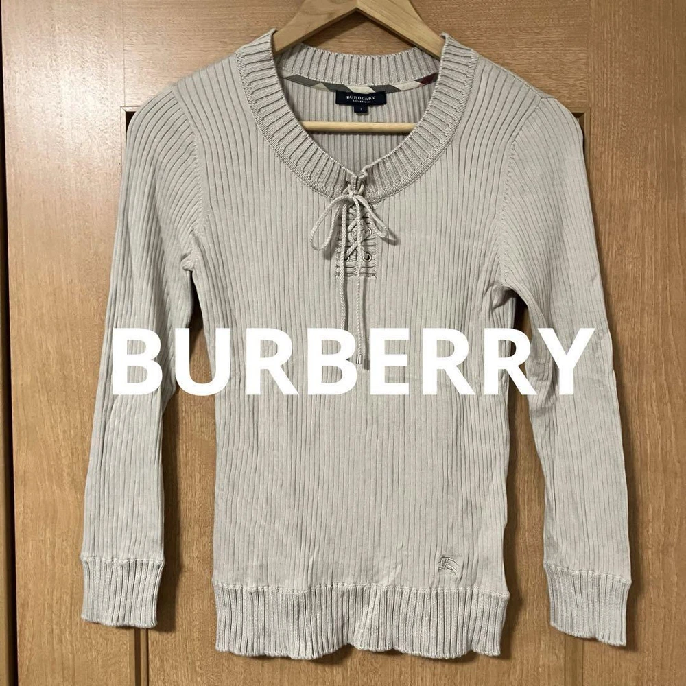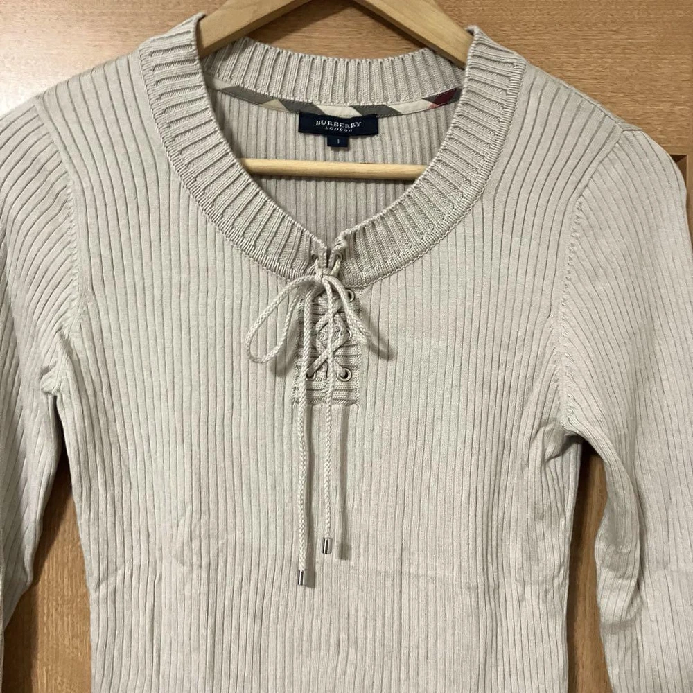 Burberry London Ribbed Knit Sweater, Khaki Beige, Lace-Up Design, New Key Features **BURBERRY LONDON Long Sleeve Knit Sweater** - **Brand:** BURBERRY LONDON - **Product Type:** Long Sleeve Knit Sweater - **Color:** Khaki Beige - **Material:** 90% Cotton, 8% Nylon, 2% Polyurethane - **Size:** Marked size 1 (Actual measurements: Width 45cm, Length 60cm) - **Design Features:** - Unique ribbed design - Stylish lace-up and cord detail at the chest - Embroidered horsemark at the hem - Nova check pattern piping on the inner neckline - **Condition:** - Light signs of use, but no notable damage - Stored at home; not suitable for those seeking perfection This sweater is perfect for fans of Y2K and grunge fairy fashion. Specifications Brand Burberry London Country Japan Product Description Item Title Nice Design Burberry London Ribbed Knit Sweater Payment Supports managed payments Please pay within 5 days after auction is finished. About Us We are located in Japan. It's our pleasure to make you happy by proposing our recommend item. If you have any questions or request about items, please feel free to ask us. International Buyers - Please Note: -Import duties, taxes, and charges are not included in the item price or shipping charges. These charges are the buyer's responsibility. -Please check with your country's customs office to determine what these additional costs will be prior to bidding/buying. -These charges are normally collected by the delivering freight (shipping) company or when you pick the item up - do not confuse them for additional shipping charges. -We do not mark merchandise values below value or mark items as - gifts - The US and International government regulations prohibit such behavior. Thank you for your understanding.