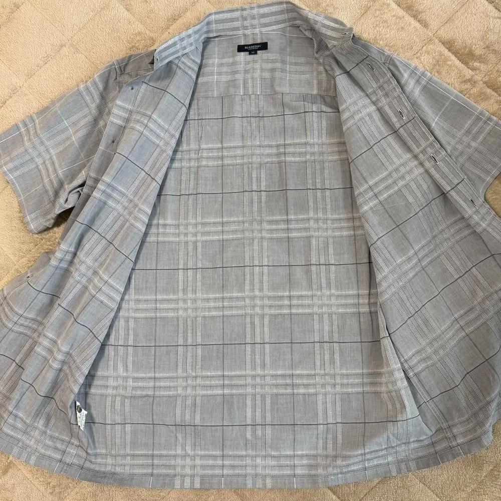 Burberry London Short Sleeve Shirt Check Gray Cotton Japan made Men Size M Used