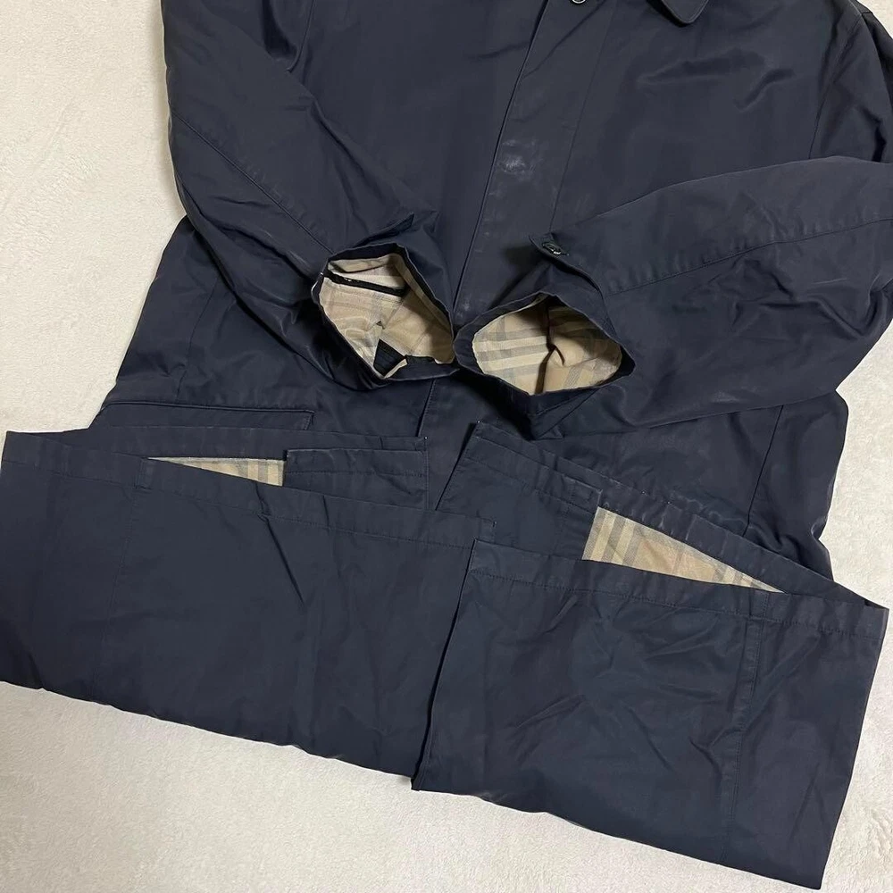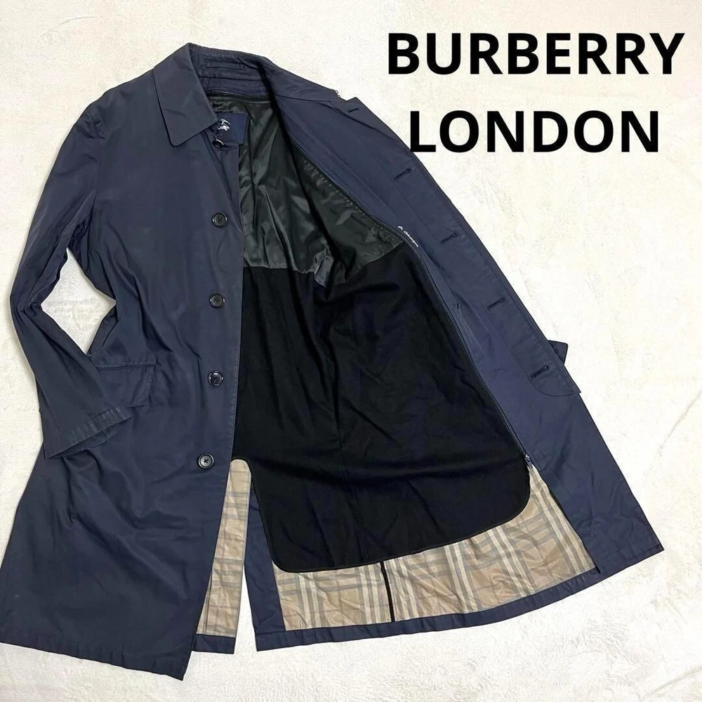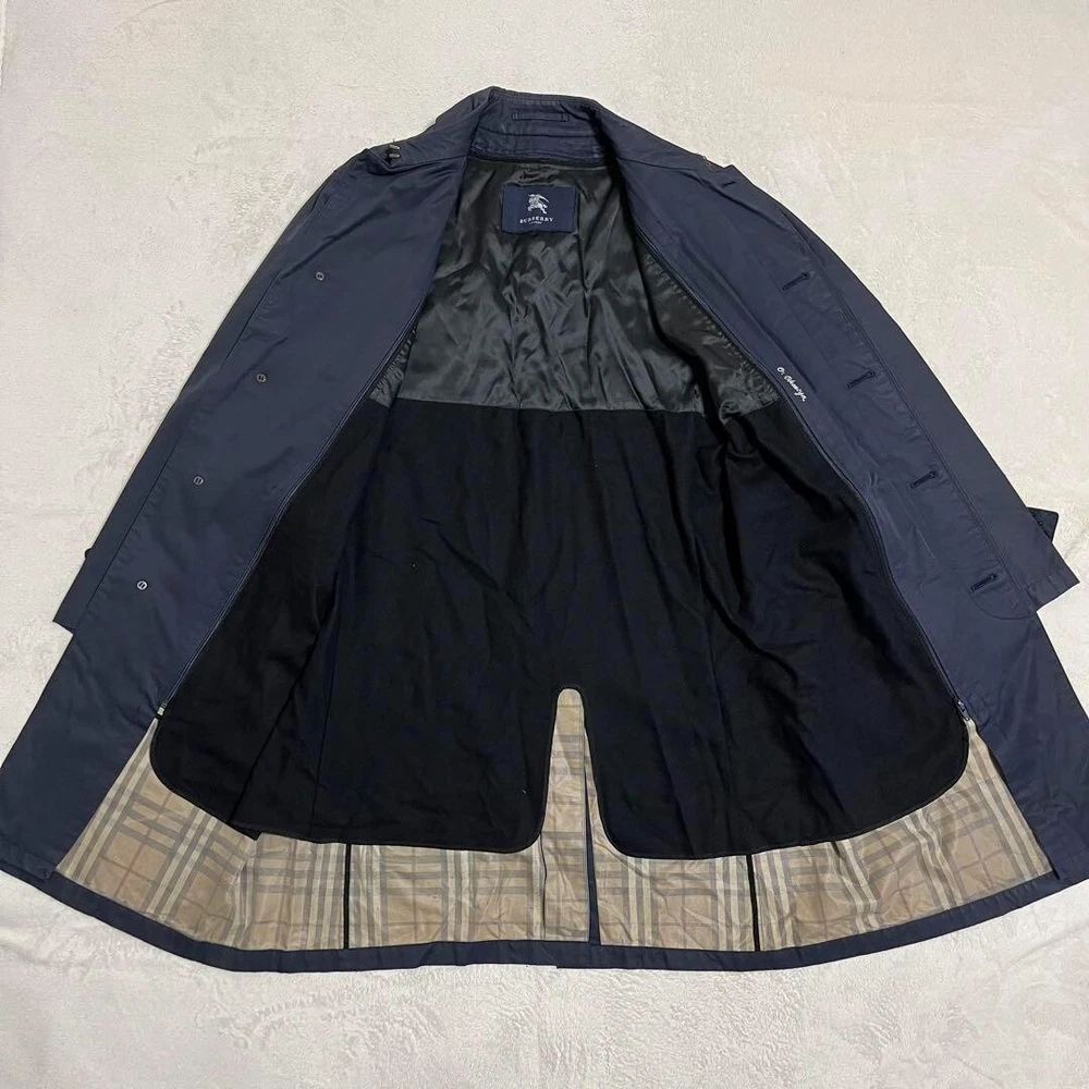 Burberry London Soutien collar Coat Navy Liner Cotton Nylon Men Size L Used