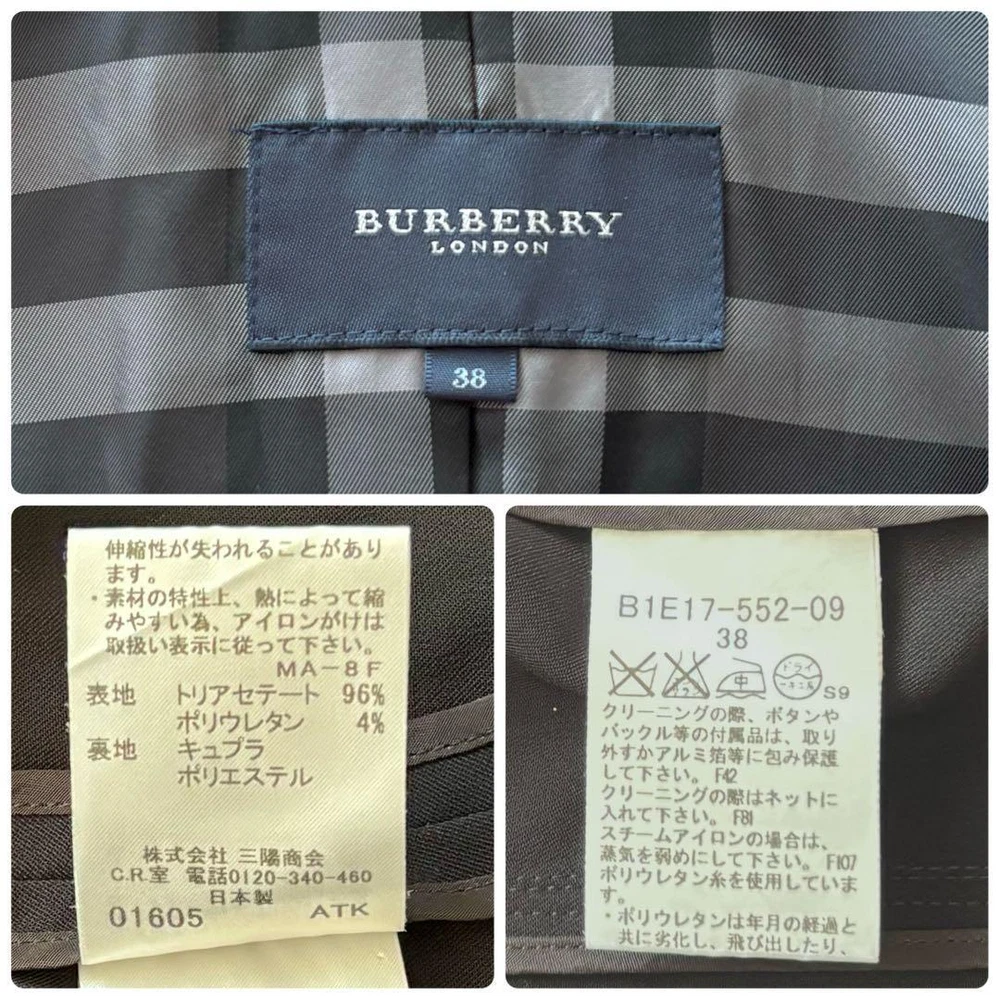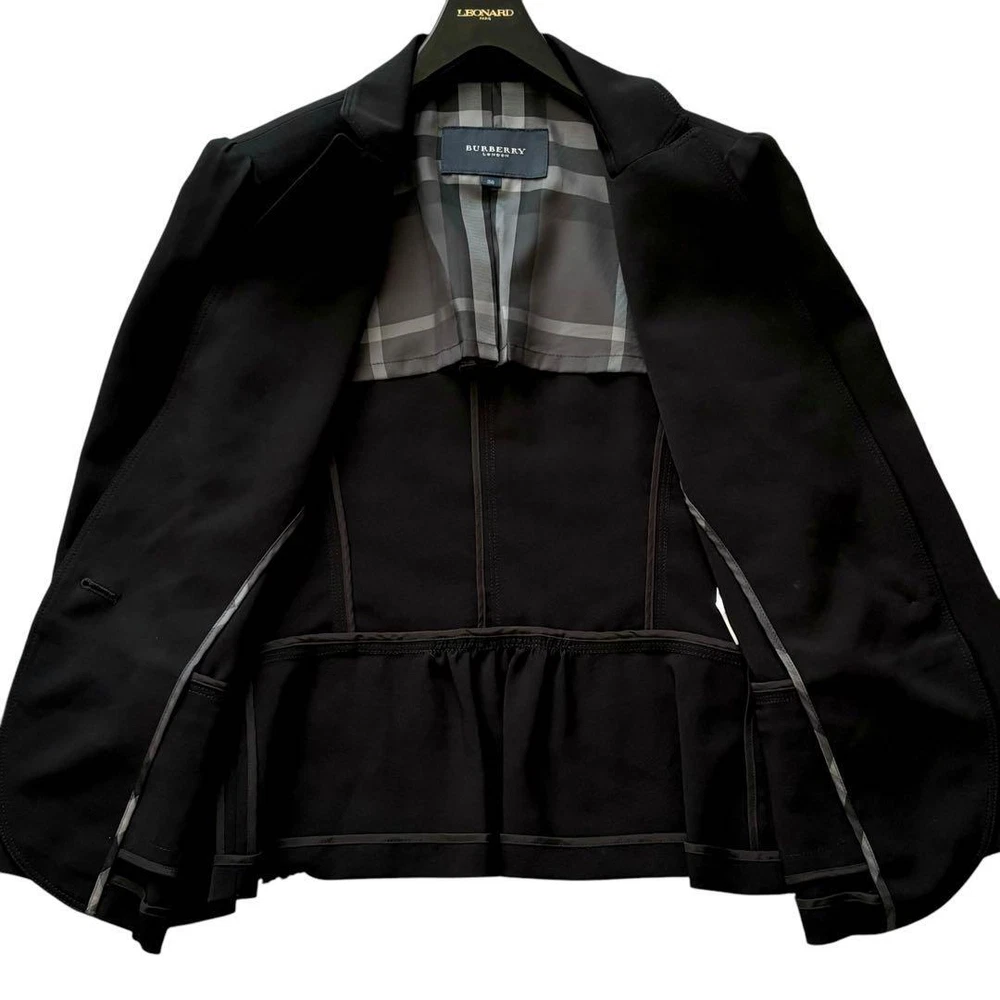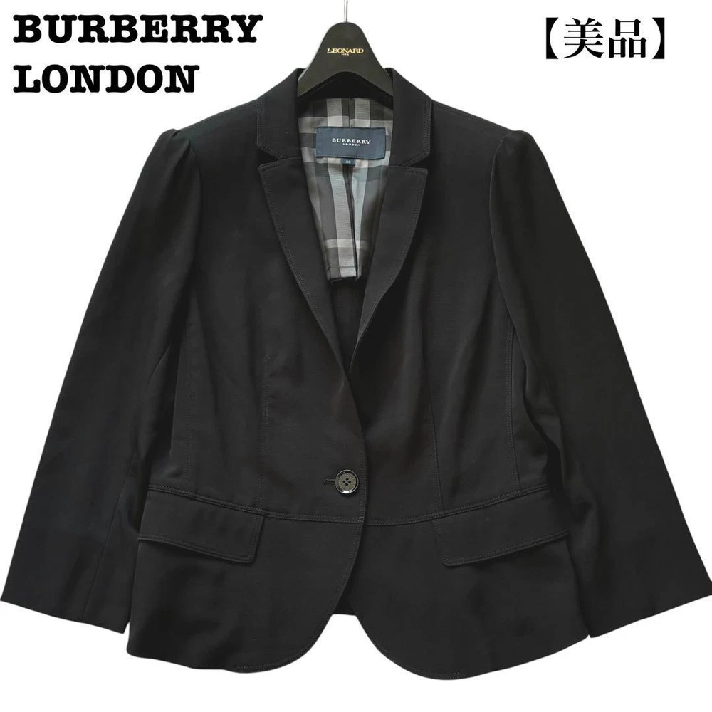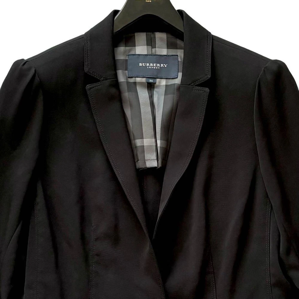 Burberry London Tailored Jacket Mega Check Black Unlined - Size M - New Key Features **BURBERRY LONDON Jacket** - **Brand:** BURBERRY LONDON - **Product Type:** Jacket - **Model:** Nova Check One-Button Jacket **Features:** - **Color:** Black - **Material:** 96% Triacetate, 4% Polyurethane - **Size:** - Marked Size: 38 (M) - Chest Width: Approximately 43.5 cm - Sleeve Length: Approximately 46.5 cm - Length: Approximately 56 cm - Shoulder Width: Approximately 37 cm - **Design:** Simple one-button style with a frilled hem, featuring Burberry's iconic mega check pattern on the lining. - **Versatile Use:** Suitable for formal occasions such as weddings, graduations, and business settings. Lightweight design pairs well with dresses, blouses, and sweaters. **Condition:** - Excellent condition with no visible stains or damage. **Note:** Specifications Brand Burberry London Country Japan Product Description Item Title Burberry London Tailored Jacket Mega Check Black Unlined Payment Supports managed payments Please pay within 5 days after auction is finished. About Us We are located in Japan. It's our pleasure to make you happy by proposing our recommend item. If you have any questions or request about items, please feel free to ask us. International Buyers - Please Note: -Import duties, taxes, and charges are not included in the item price or shipping charges. These charges are the buyer's responsibility. -Please check with your country's customs office to determine what these additional costs will be prior to bidding/buying. -These charges are normally collected by the delivering freight (shipping) company or when you pick the item up - do not confuse them for additional shipping charges. -We do not mark merchandise values below value or mark items as - gifts - The US and International government regulations prohibit such behavior. Thank you for your understanding.