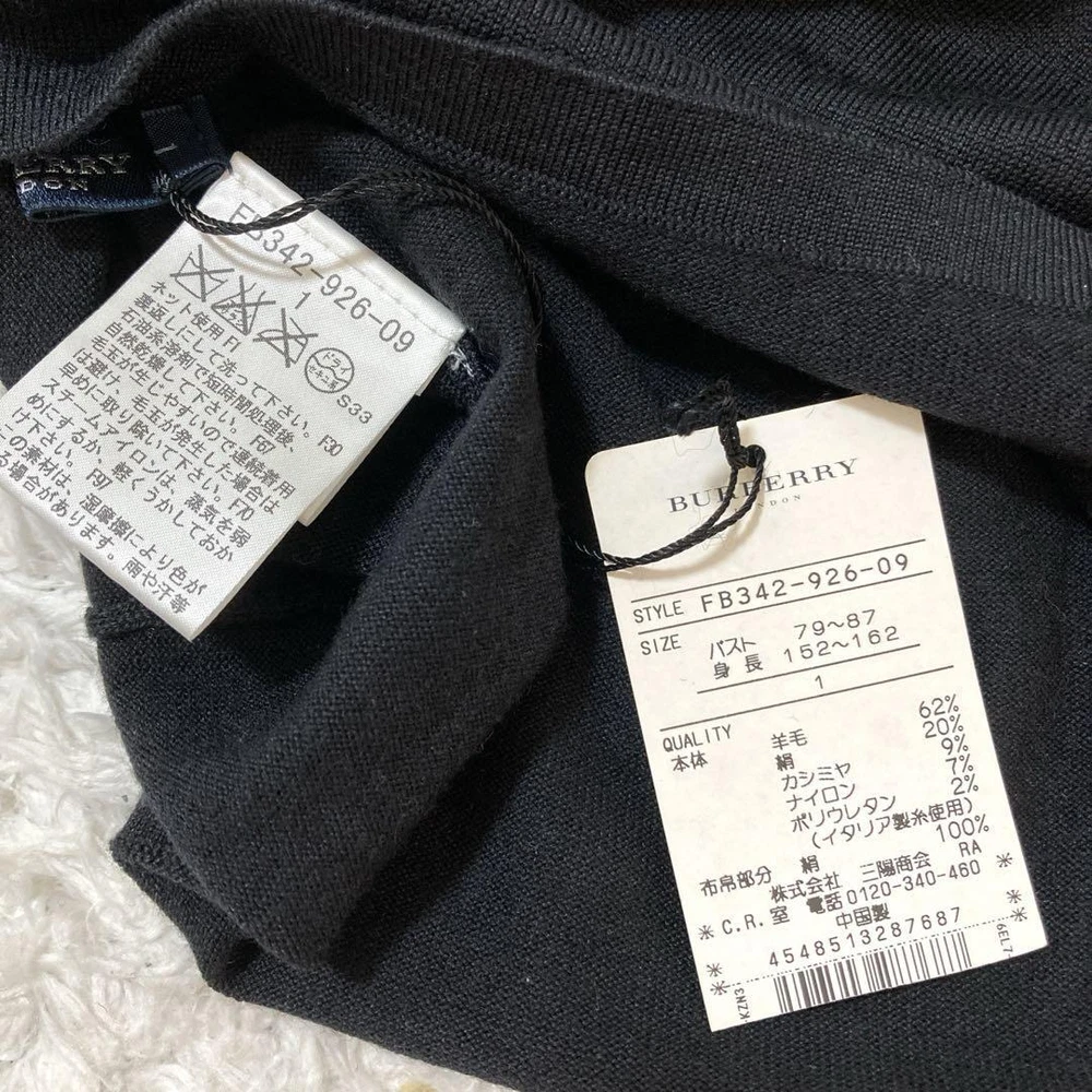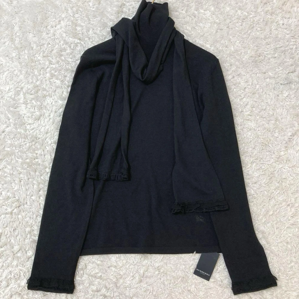 Burberry London Thin Silk Knit Turtleneck Shawl Top Size S Key Features **Burberry London Knit Turtleneck Sweater with Shawl** - **Brand**: Burberry London - **Product Type**: Knit Turtleneck Sweater - **Model**: Size 1 (S) - **Color**: Black - **Material**: - Main: 62% Wool, 20% Silk, 9% Cashmere, 7% Nylon, 2% Polyurethane - Shawl: 100% Silk - **Size Details**: - Shoulder Width: Approximately 35 cm - Chest Width: Approximately 43 cm - Sleeve Length: Approximately 60 cm - Length: Approximately 53 cm - **Condition**: - Gently used with no noticeable damage; still in excellent condition for continued use. - Tag attached, but previously owned. - Not suitable for those seeking brand-new items or who are overly sensitive to minor imperfections. - Specifications Brand Burberry London Country Japan Product Description Item Title Tagged Burberry London Shawl Turtle Knit Thin Silk Payment Supports managed payments Please pay within 5 days after auction is finished. About Us We are located in Japan. It's our pleasure to make you happy by proposing our recommend item. If you have any questions or request about items, please feel free to ask us. International Buyers - Please Note: -Import duties, taxes, and charges are not included in the item price or shipping charges. These charges are the buyer's responsibility. -Please check with your country's customs office to determine what these additional costs will be prior to bidding/buying. -These charges are normally collected by the delivering freight (shipping) company or when you pick the item up - do not confuse them for additional shipping charges. -We do not mark merchandise values below value or mark items as - gifts - The US and International government regulations prohibit such behavior. Thank you for your understanding.