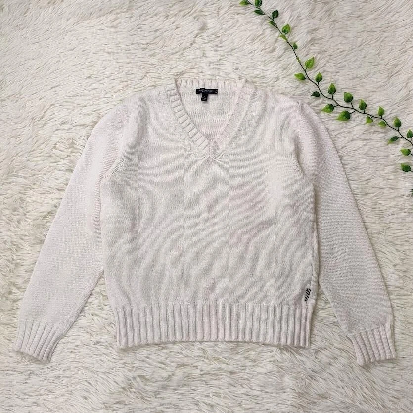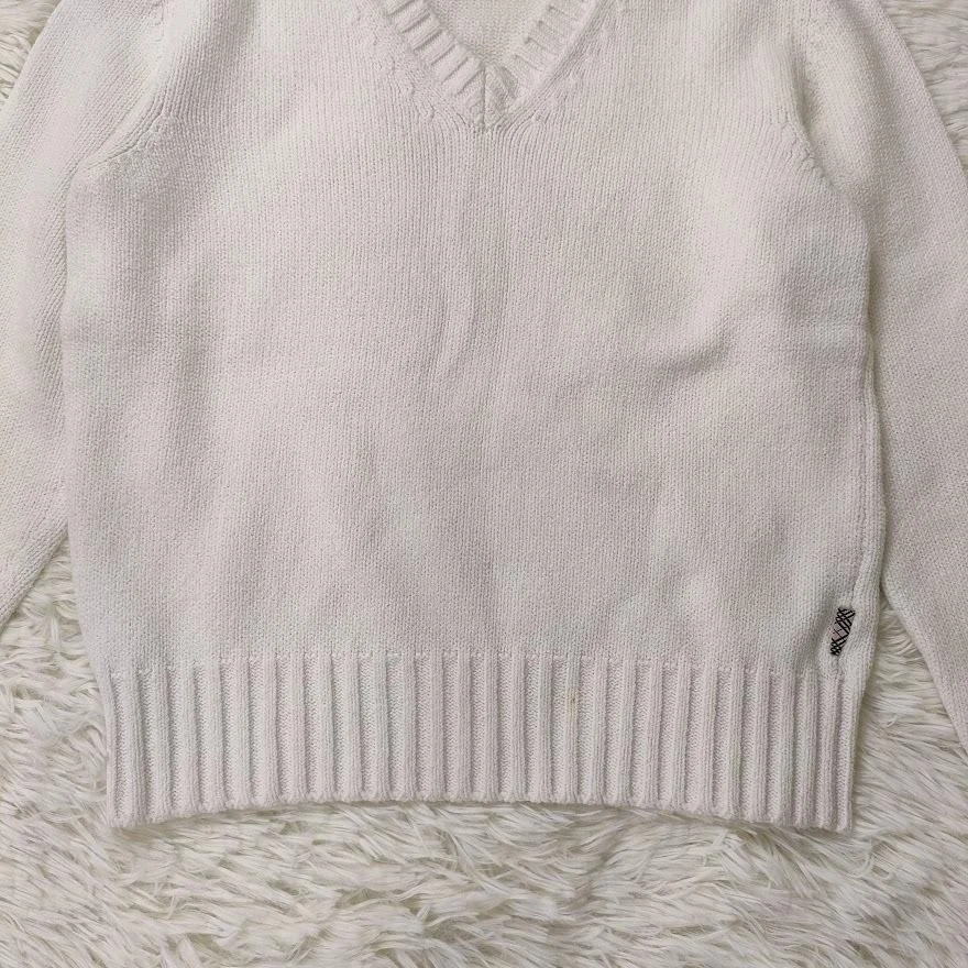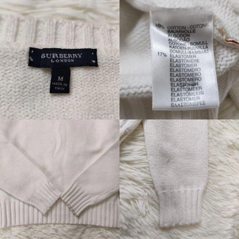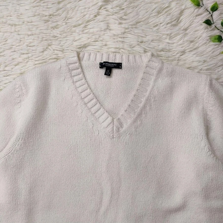 Burberry London V Neck Knit Sweater M White Nova Check New Key Features **Burberry London V-Neck Knit Sweater** - **Brand**: Burberry London - **Product Type**: Knit Sweater - **Model**: V-Neck - **Size**: M - **Measurements**: - Length: 52 cm - Width: 42 cm - Shoulder Width: 37 cm - Sleeve Length: 52 cm - **Color**: White - **Material**: Cotton, Elastomer (refer to images for details) **Condition**: - Minor stains (3 spots) as shown in images 4 and 5. - Some thread pulls (image 7, bottom right). - Overall, the sweater is relatively clean with no prominent stains or damage, featuring slight pilling and wear. - Adorable Nova Check tag on the front left adds a stylish touch. **Note**: - Please be aware that the color may vary due to lighting conditions during Specifications Brand Burberry London Country Japan Product Description Item Title Burberry London V Neck Knit Sweater M White Nova Check Tag Payment Supports managed payments Please pay within 5 days after auction is finished. About Us We are located in Japan. It's our pleasure to make you happy by proposing our recommend item. If you have any questions or request about items, please feel free to ask us. International Buyers - Please Note: -Import duties, taxes, and charges are not included in the item price or shipping charges. These charges are the buyer's responsibility. -Please check with your country's customs office to determine what these additional costs will be prior to bidding/buying. -These charges are normally collected by the delivering freight (shipping) company or when you pick the item up - do not confuse them for additional shipping charges. -We do not mark merchandise values below value or mark items as - gifts - The US and International government regulations prohibit such behavior. Thank you for your understanding.