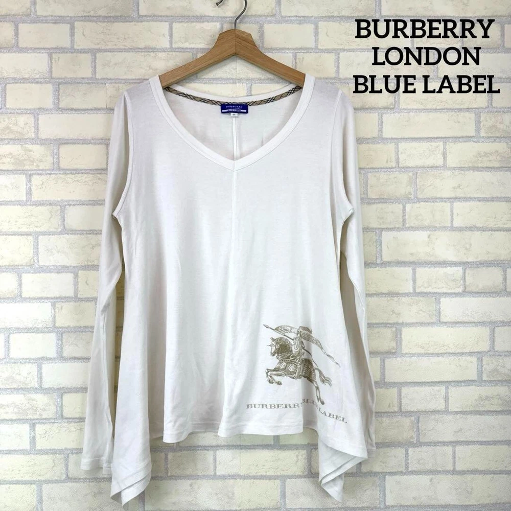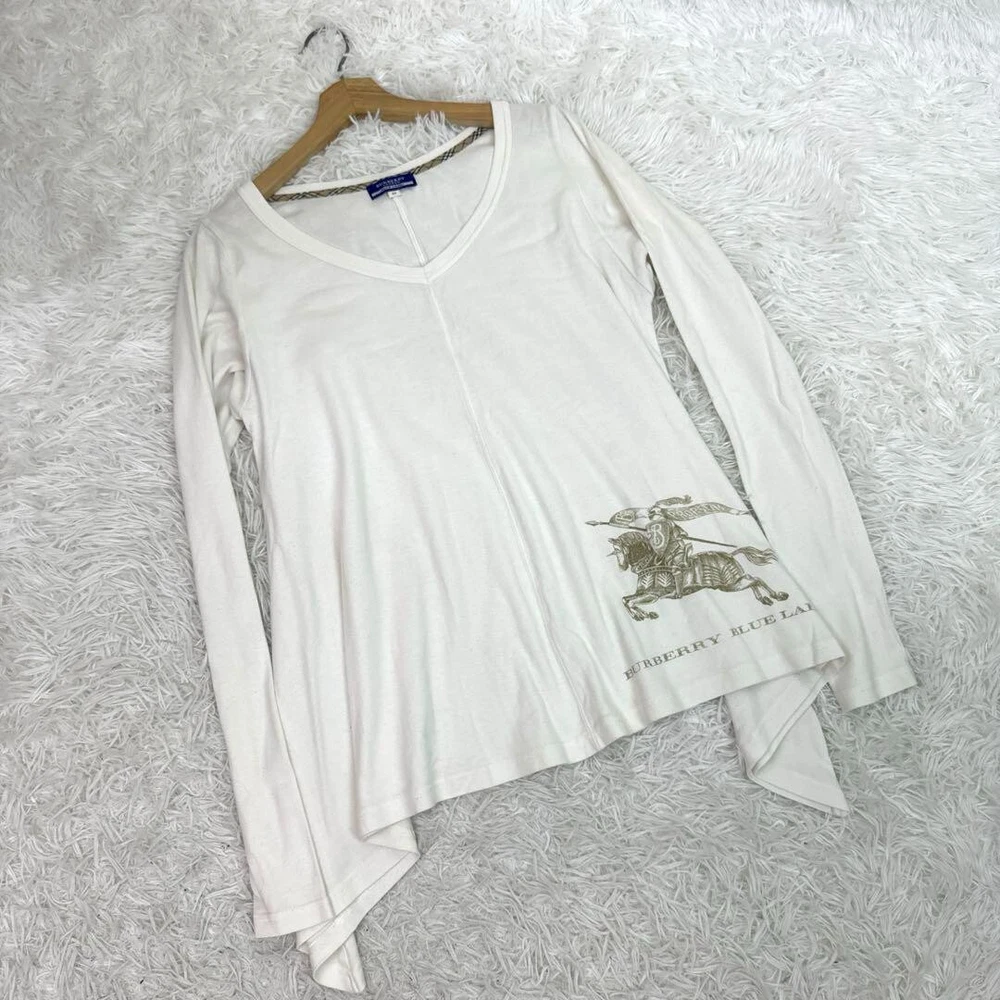 Burberry Long Sleeve Cut & Sewn T-shirt Flare White Logo Women Size 38/S-M Used