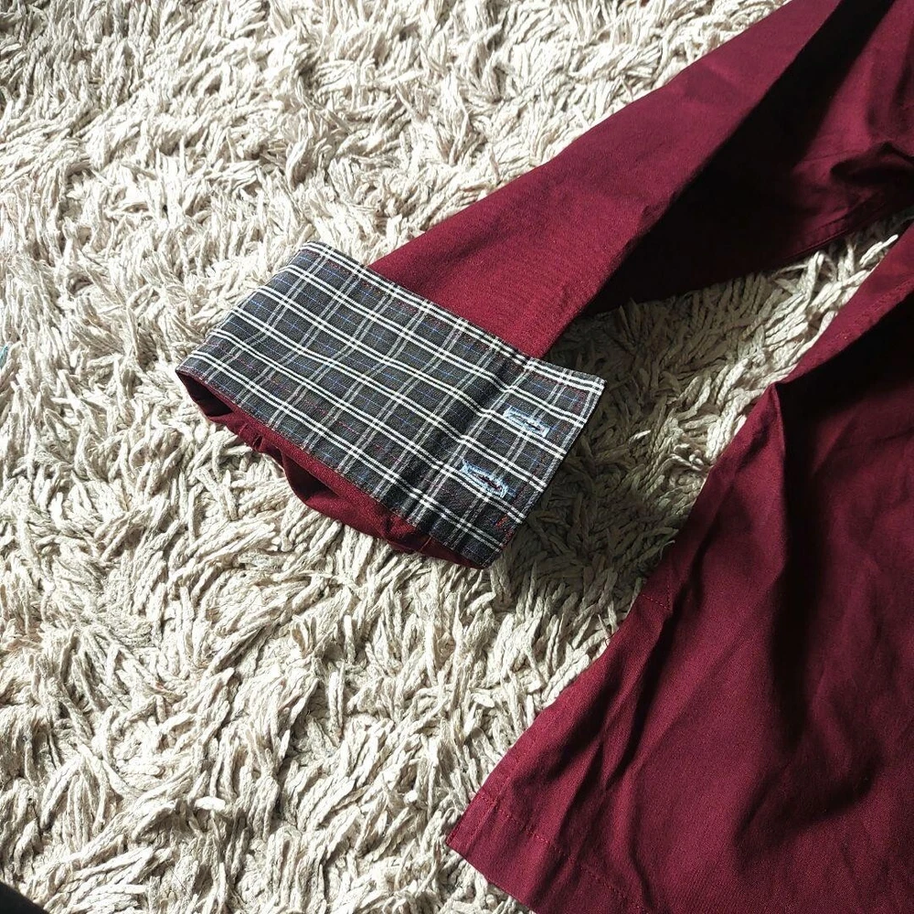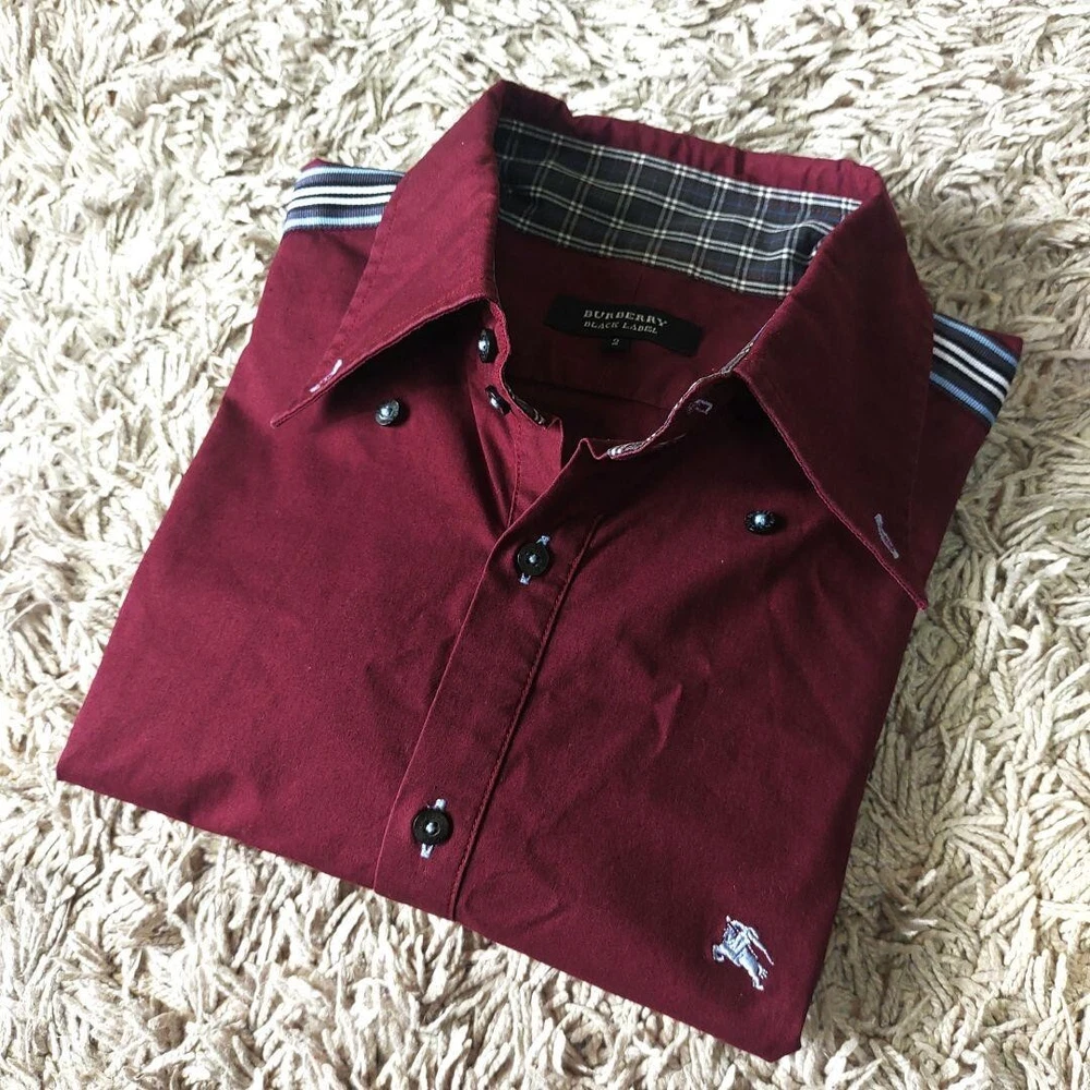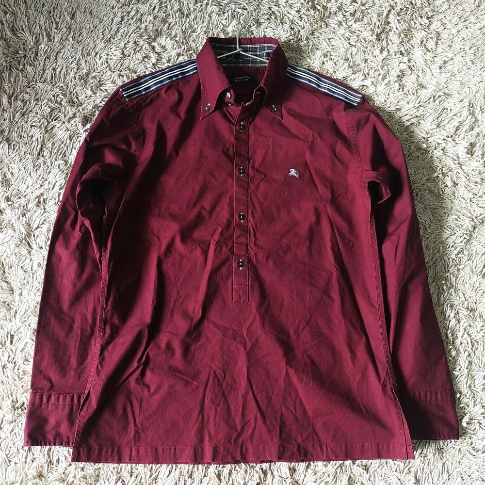 Burberry Long sleeve Shirt Bordeaux Nova Check Logo Cotton Men Size 2 Used