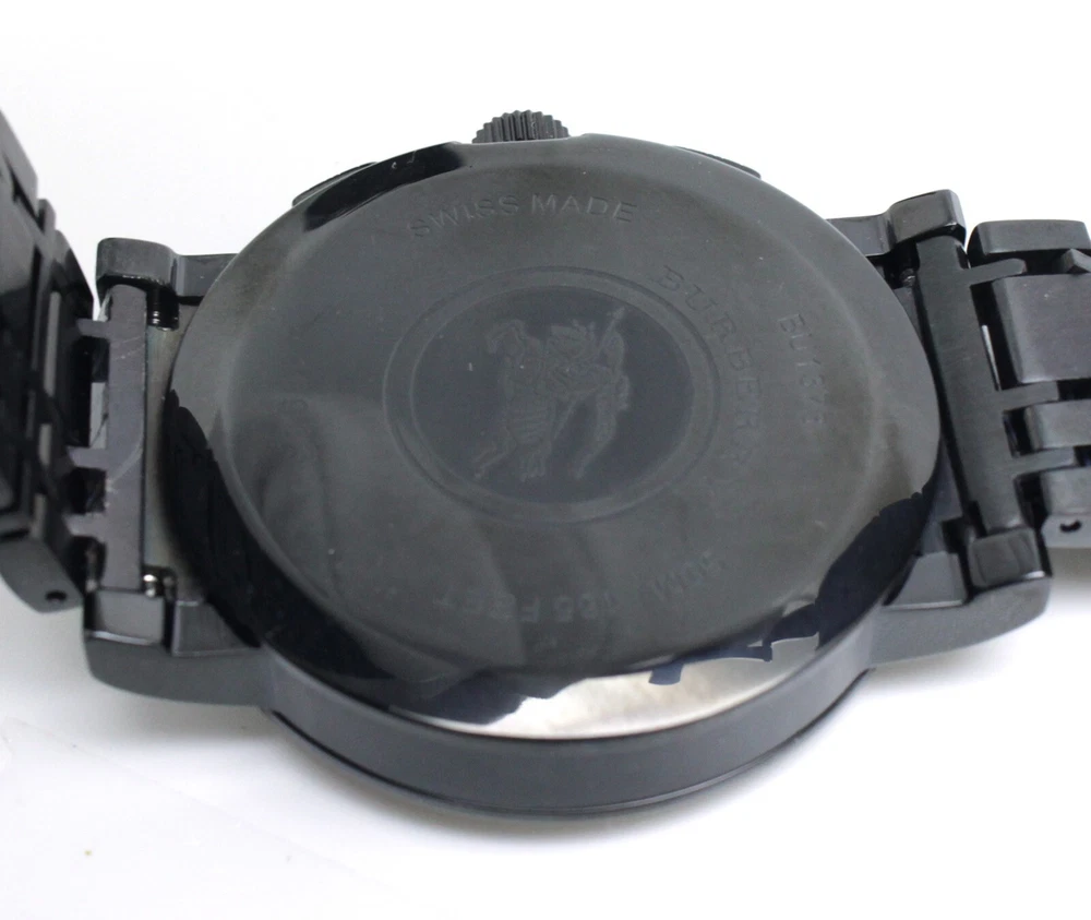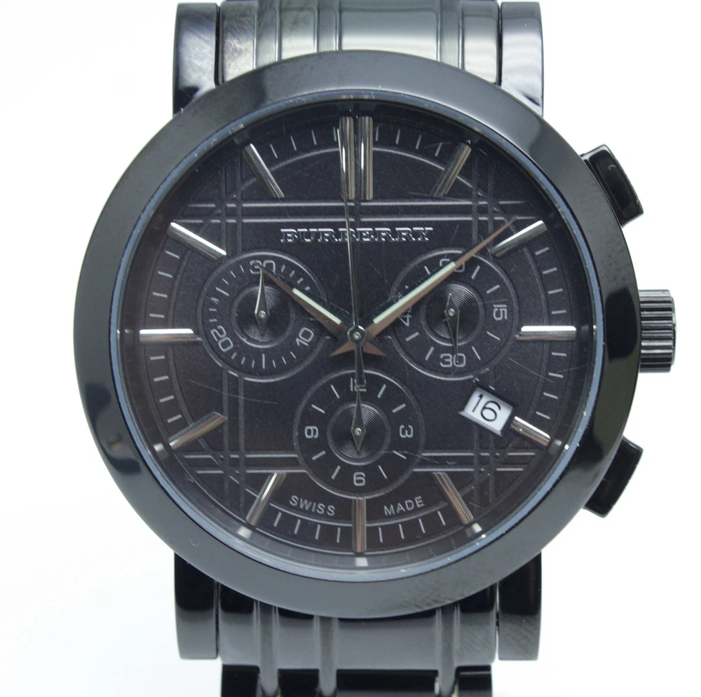 【Item Nunber】241100026 【Brand】Burberry 【Art】BU16933 【Country of manufacture】Switzerland 【Serial Nunber】16933 【Material】Stainless Steel 【Color】Black 【Size】Case: 40 mm, Bracelet: 7.8 in (20 cm) 【Movement】Quartz 【Accessories】Original Packaging, Original Box, Instruction Manual, Warrenty 【Condition】Pre-owned Good Grade: This watch has minor scuffing. Also, the hands on the Chronograph are slightly out of alignment. ※International Buyers -Please Note: Import duties, taxes and charges are not included in the item price or shipping charges.These charges are the buyter's responsibility. Please check with your country's customs office to determine what these additonal costs will be prior to bidding/buying. These charges are normally collected by the delivering freight (shipping) company or when you pick the item up do not confuse them for additonal shipping charges. We do not mark merchandise values below value or mark items as "gifts" US and International goverment regulations prohibit such behavior.