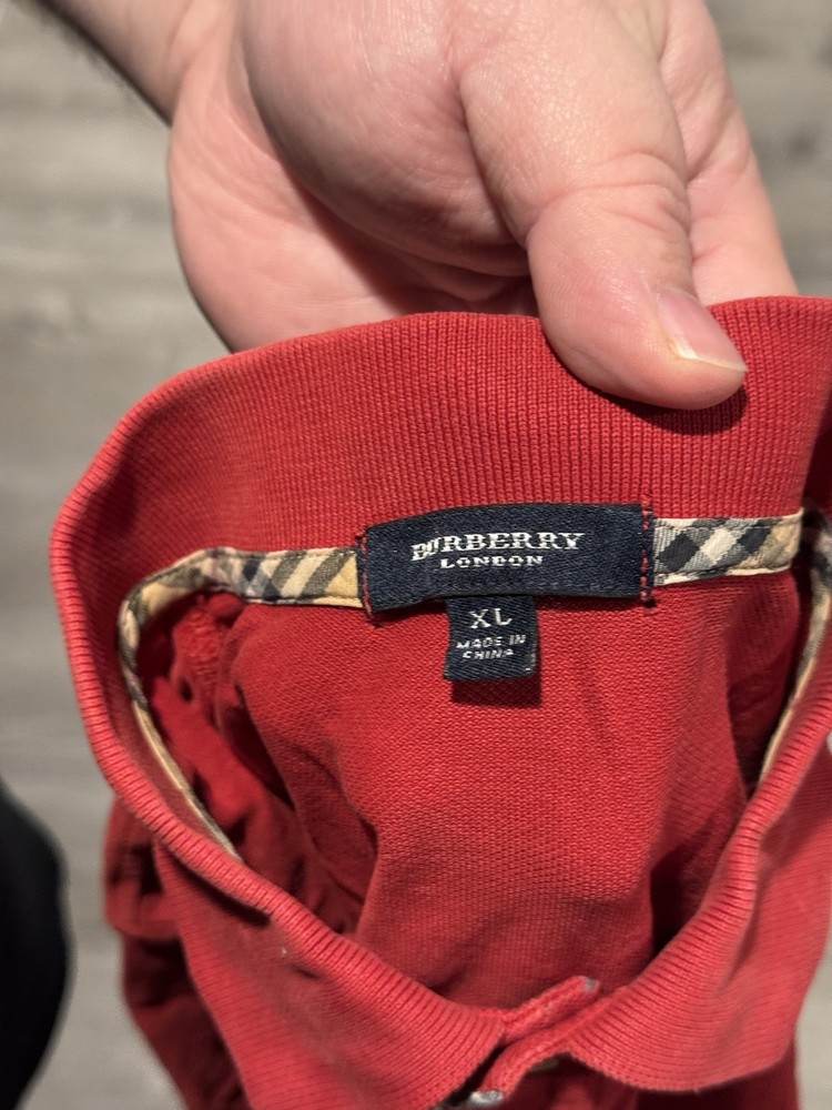 Size Type: Regular Pattern: Solid Color: Red Occasion: Business, Casual Personalize: No Season: Fall, Spring, Summer, Winter Closure: Pullover Department: Men Type: Polo Neckline: Collared Sleeve Length: Short Sleeve Fit: Regular Material: 100% Cotton Handmade: No Vintage: No Brand: Burberry Size: L