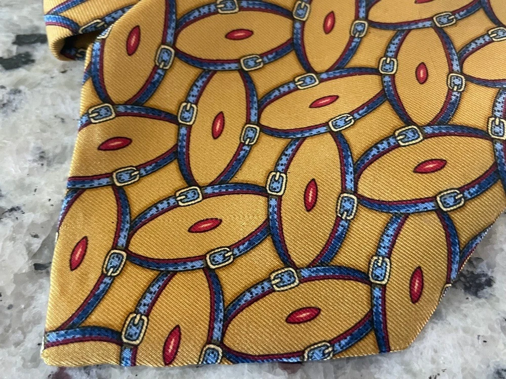 Pattern: Belt Loop Type: Tie Item Length: Classic (57 in.-60 in.) Brand: Burberry Country/Region of Manufacture: France Personalize: No Material: 100% Silk Color: Yellow gtin13: Does not apply Size: 60" Features: Adjustable Department: Men UPC: Does not apply Fabric Type: 100% Silk Vintage: No Style: Designer Item Width: Classic Seller Notes: “EUC, 9 of 10” Handmade: No Theme: Abstract Attachment Type: Tied