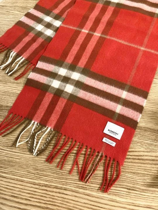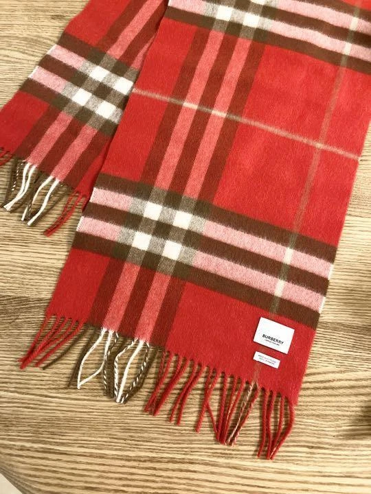 Burberry Nova Check 100 % Cashmere Scarf Red Brown New with Box From Japan