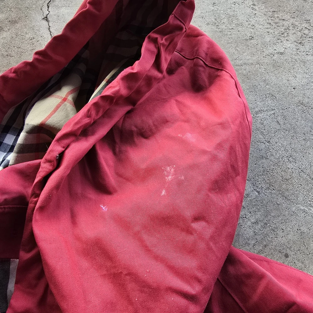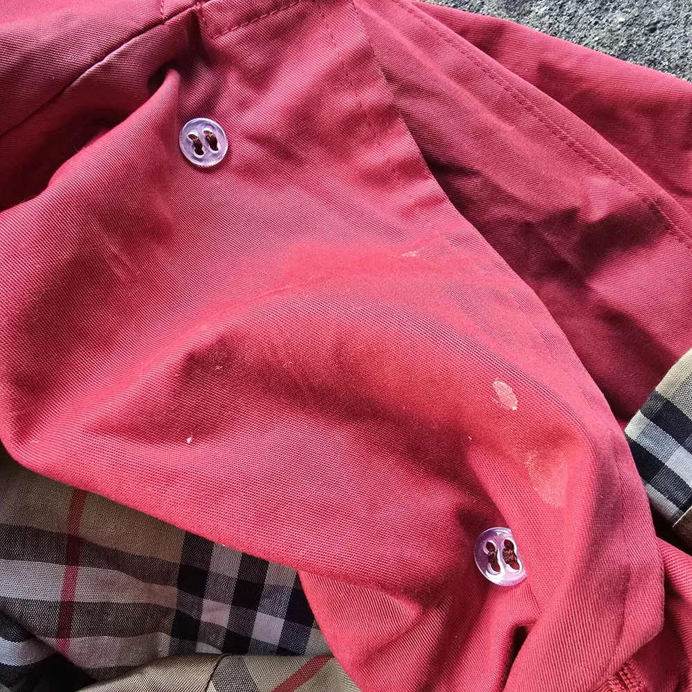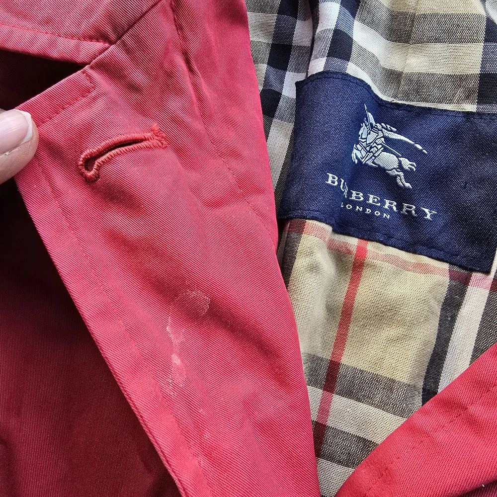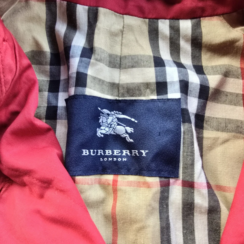 Burberry Nova Check Red Trench Coat Jacket Womens 12 In preloved condition This little cutie has cosmetic spots on inner button bed, wrist, hood and fading along opening Please check out photos for details/ flaws Chest: 22 Length: 37