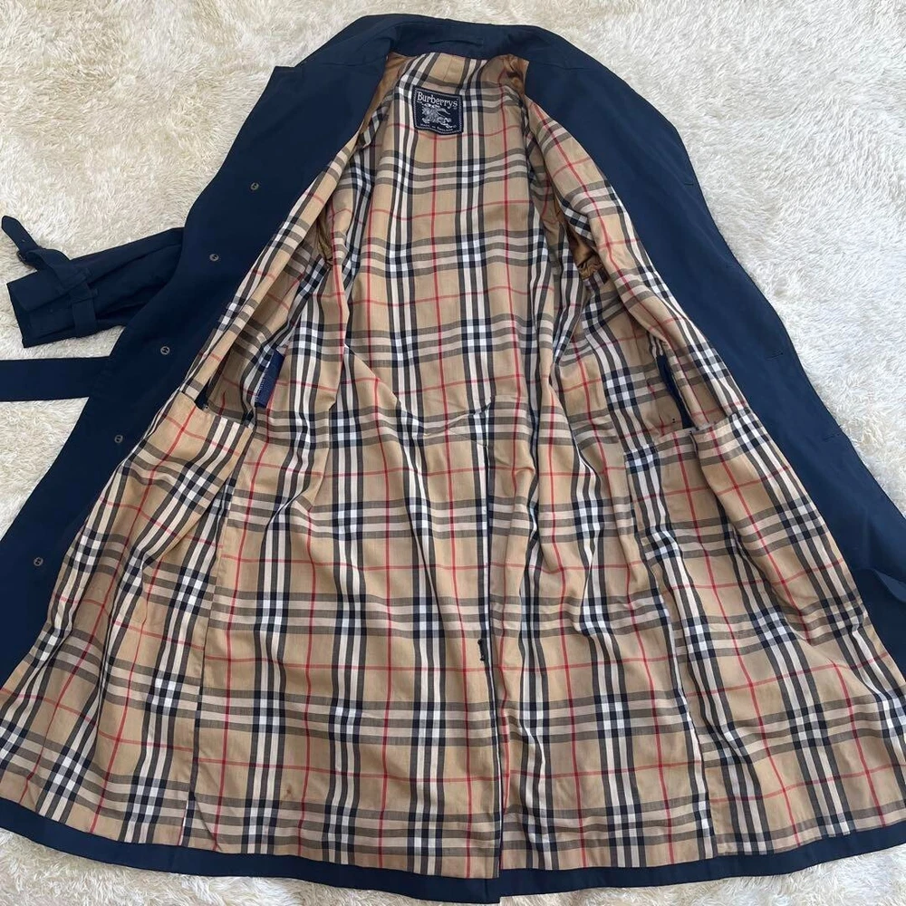 Burberry Nova Check Trench Coat Stencil Collar Coat Navy Long length with belt