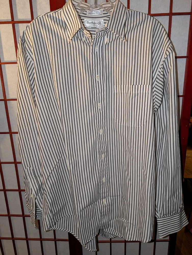 Vintage Burberrys of London dress shirt 17/35. This is a very well made shirt and has been well maintained over the years. Full disclosure There is a small spot on the right cuff and a very hard to see tiny spot near the collar. Pictures included of both
