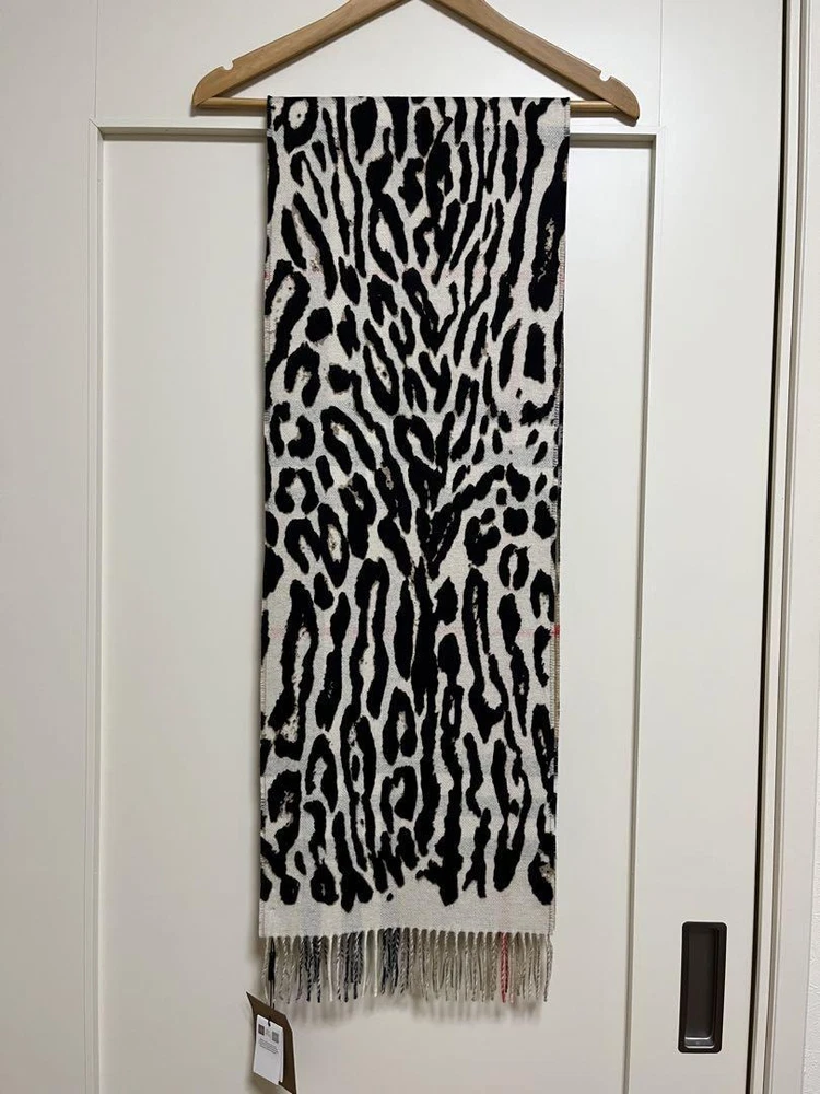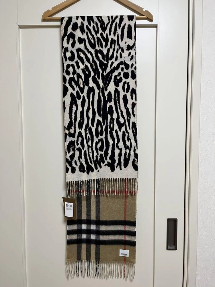 Burberry Reversible Scarf 100% Cashmere Unused with Tags Leopard Print NEW