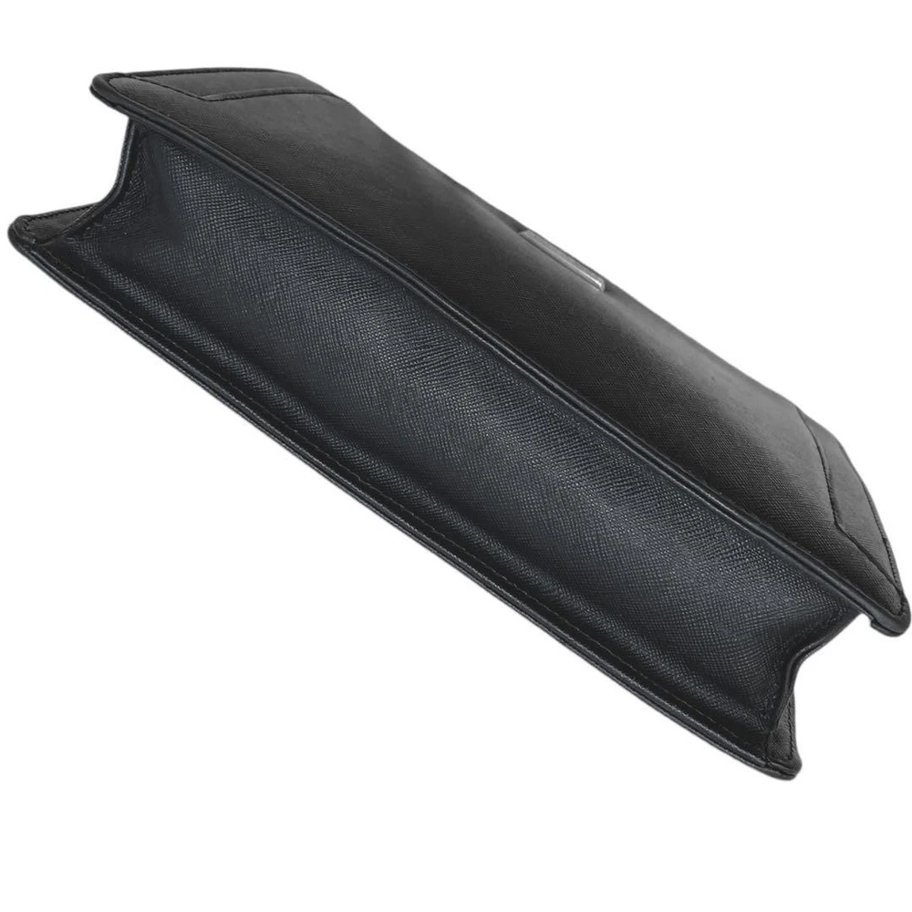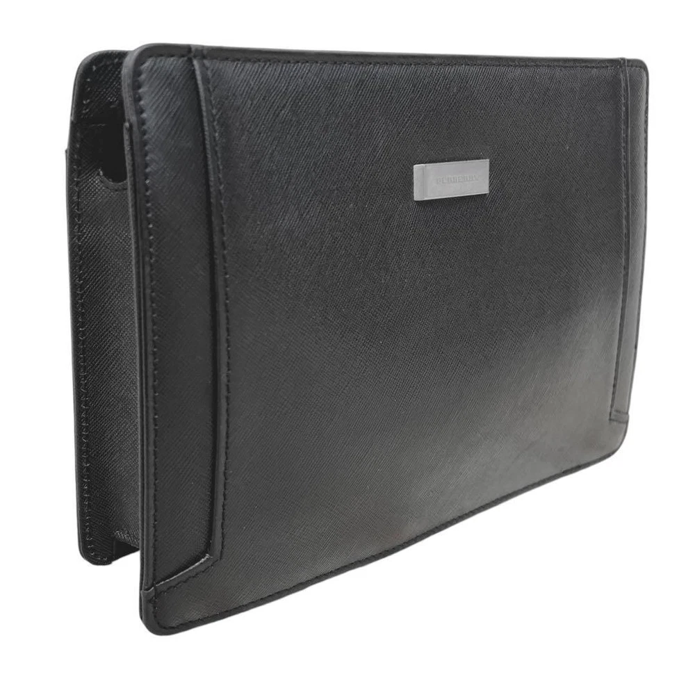 Burberry Second Bag Leather Saffiano Silver Hardware Work Black