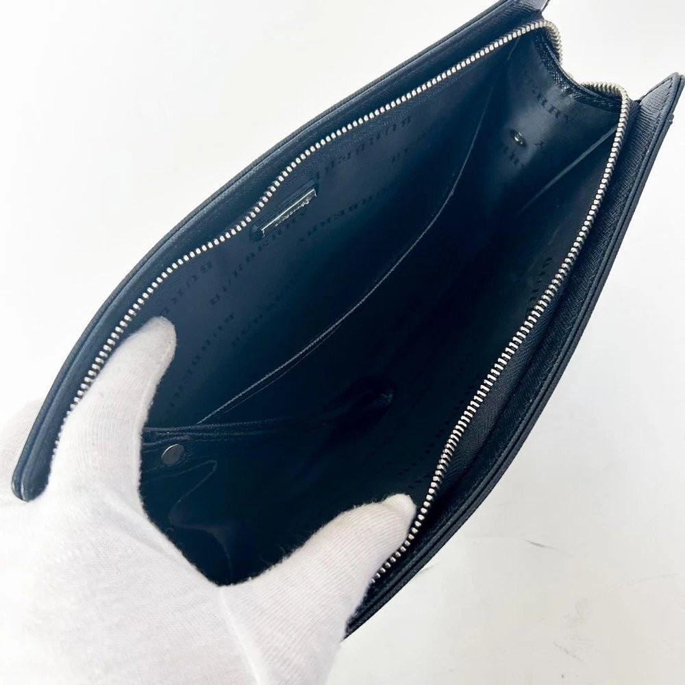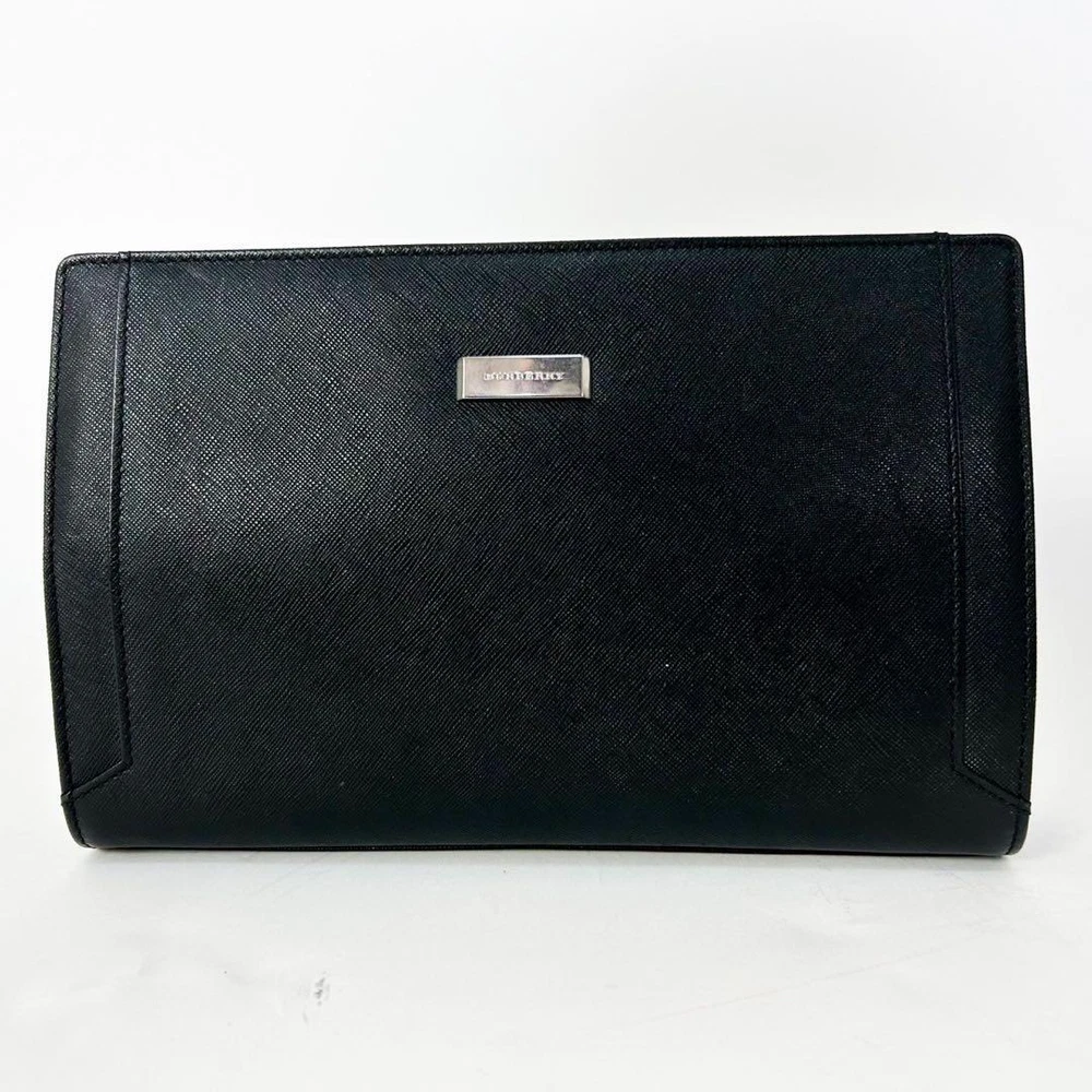 Burberry Second Bag Logo Plate Saffiano Leather Black