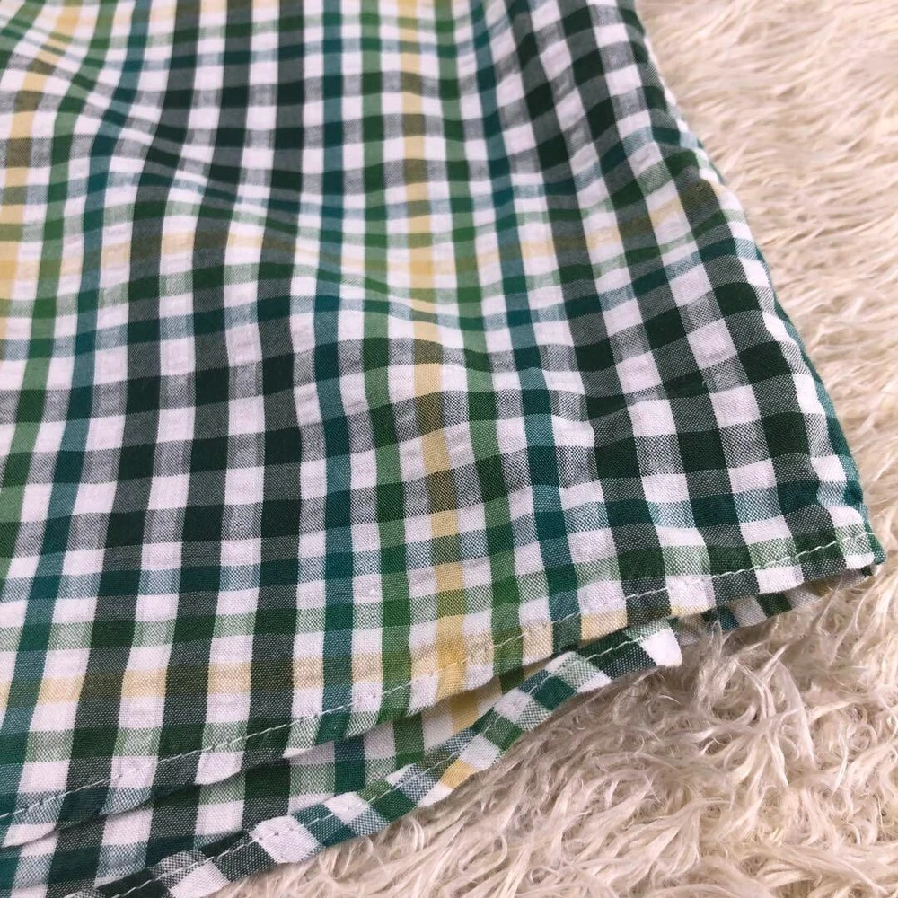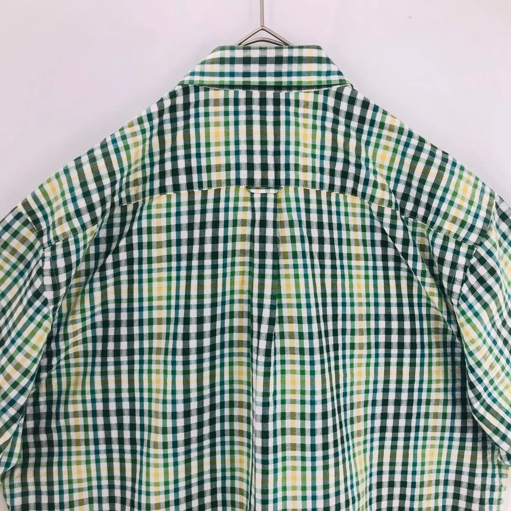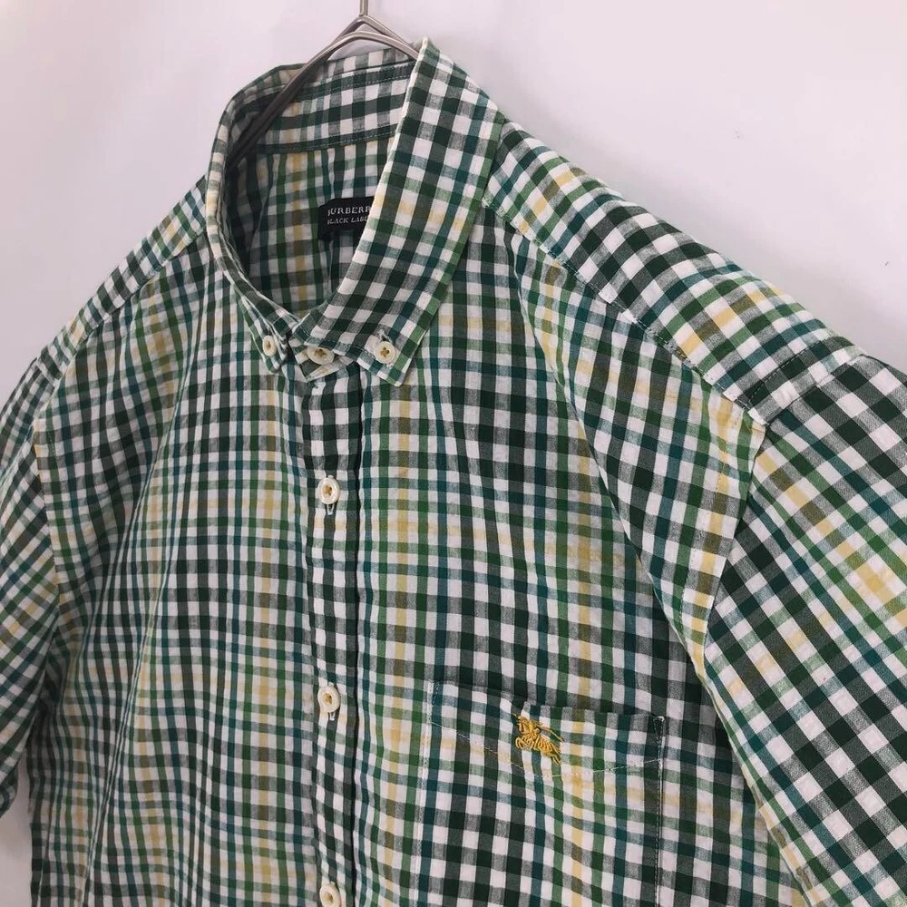 Burberry Seersucker Short Sleeve Check Shirt Cotton Green Men Size 3 Used
