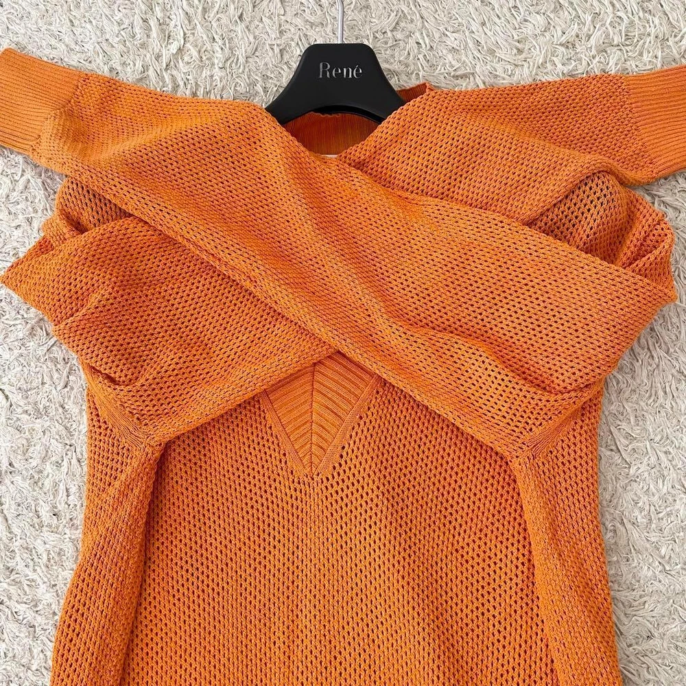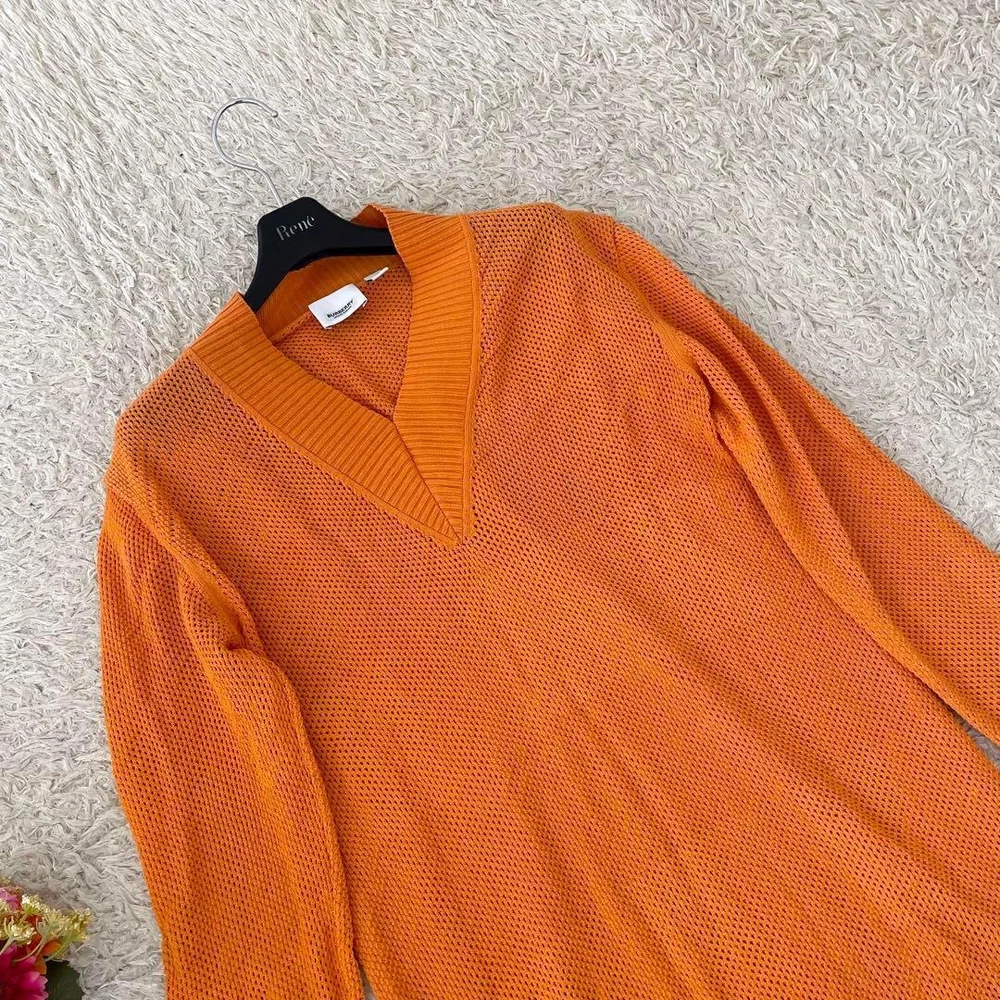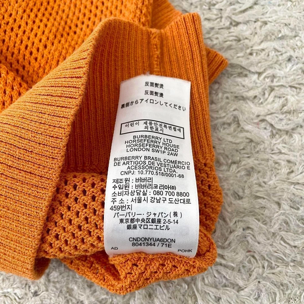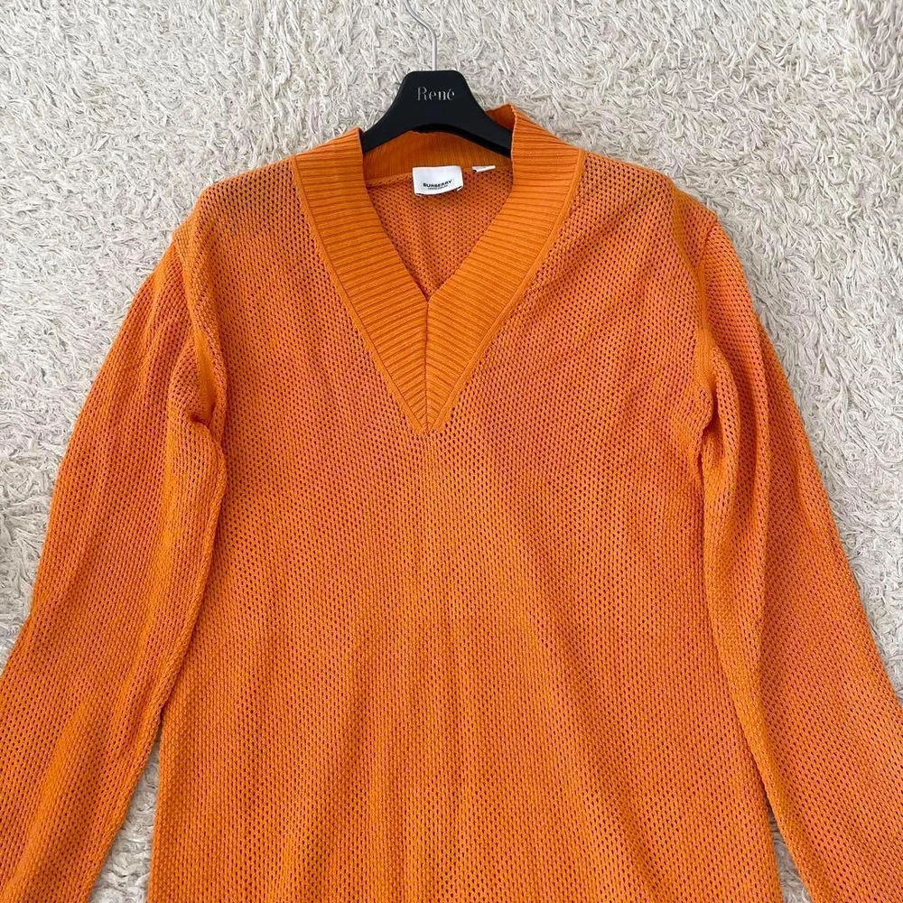 Burberry Shadow Check Tunic Sweatshirt V-Neck Orange Size L - New Key Features **BURBERRY LONDON Tunic Sweater** - **Brand**: BURBERRY LONDON - **Product Type**: Tunic Sweater - **Model**: Shadow Check Nova Check - **Color**: Orange - **Size**: Large (L) - Shoulder Width: 45 cm - Chest Width: 48 cm - Sleeve Length: 59 cm - Length: 80 cm - **Material**: Mesh - **Condition**: - Gently used with no noticeable scratches or stains. - Still in great condition for continued use. - Please note, this is a pre-owned item; perfection seekers should refrain from purchasing. - **Features**: - Long sleeves, perfect for the upcoming season. - Longer tunic style with a full shadow check design. *Please be aware that the actual color may vary slightly due to photography lighting and device settings.* Specifications Brand Burberry Country Japan Product Description Item Title Current Burberry Tunic Sweatshirt Shadow Check L Payment Supports managed payments Please pay within 5 days after auction is finished. About Us We are located in Japan. It's our pleasure to make you happy by proposing our recommend item. If you have any questions or request about items, please feel free to ask us. International Buyers - Please Note: -Import duties, taxes, and charges are not included in the item price or shipping charges. These charges are the buyer's responsibility. -Please check with your country's customs office to determine what these additional costs will be prior to bidding/buying. -These charges are normally collected by the delivering freight (shipping) company or when you pick the item up - do not confuse them for additional shipping charges. -We do not mark merchandise values below value or mark items as - gifts - The US and International government regulations prohibit such behavior. Thank you for your understanding.
