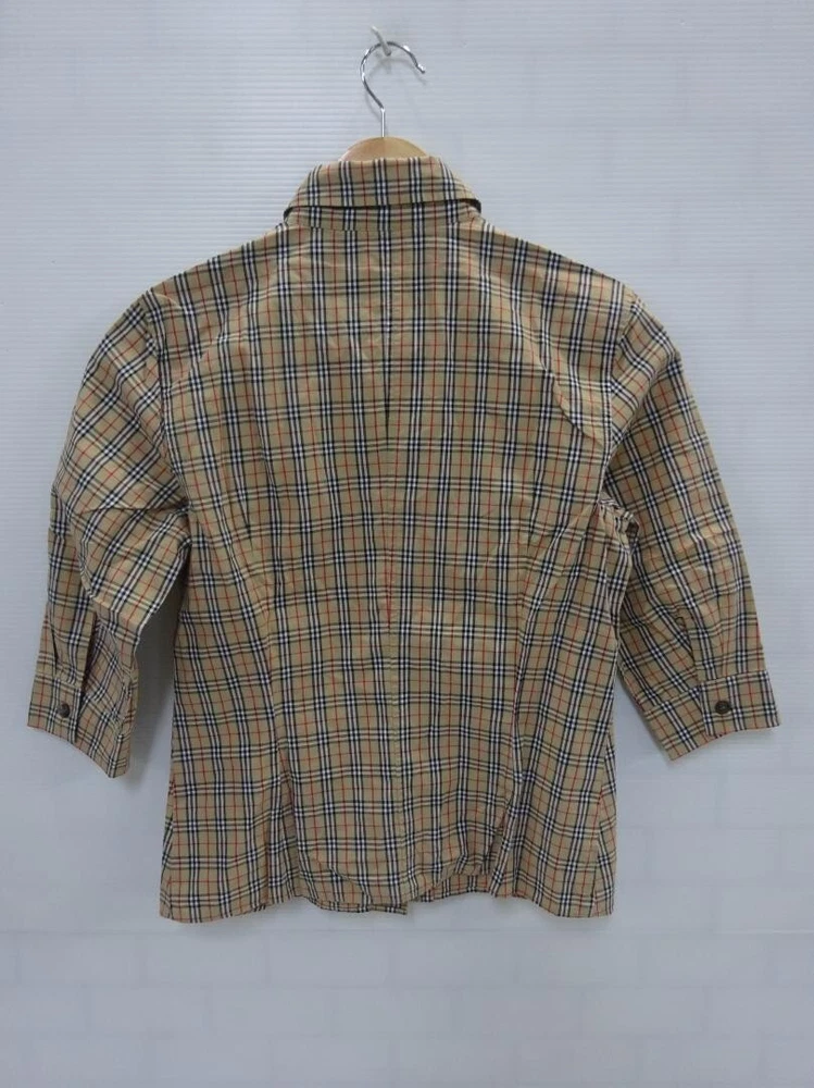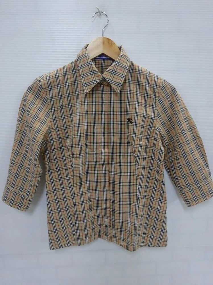 Brand: Burberry Strap Type: NA Occasion: Business, Casual, Travel MPN: NA Garment Care: NA Size Type: Regular Size: 38 gtin13: Does not apply Closure: Button Theme: NA Type: Blouse Handmade: No Color: Beige Material: Cotton Vintage: No Sleeve Length: 3/4 Sleeve Style: Basic Fabric Type: NA Season: Fall, Spring, Summer Features: NA Accents: Button Department: Women Fit: Slim Sleeve Type: NA UPC: Does not apply Character: NA Personalize: No Neckline: Collared Pattern: Check