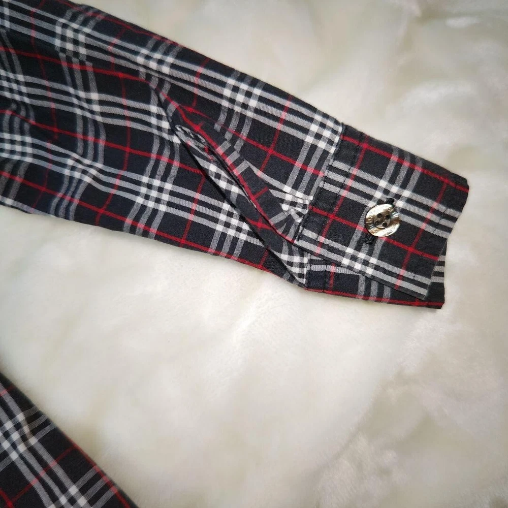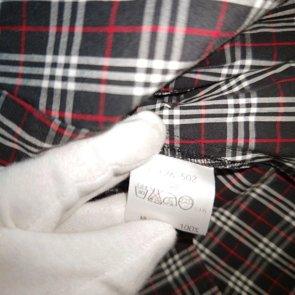 Handmade: No Sleeve Type: NA Color: Blue Material: Cotton Style: Basic Theme: NA Size: 38 Garment Care: NA Vintage: No Features: NA Type: Blouse Strap Type: NA Accents: Button Fit: Slim MPN: NA Sleeve Length: Long Sleeve UPC: Does not apply Personalize: No gtin13: Does not apply Brand: Burberry Closure: Button Occasion: Business, Casual, Travel Department: Women Character: NA Pattern: Check Season: Fall, Spring, Winter Neckline: Collared Size Type: Regular Fabric Type: NA