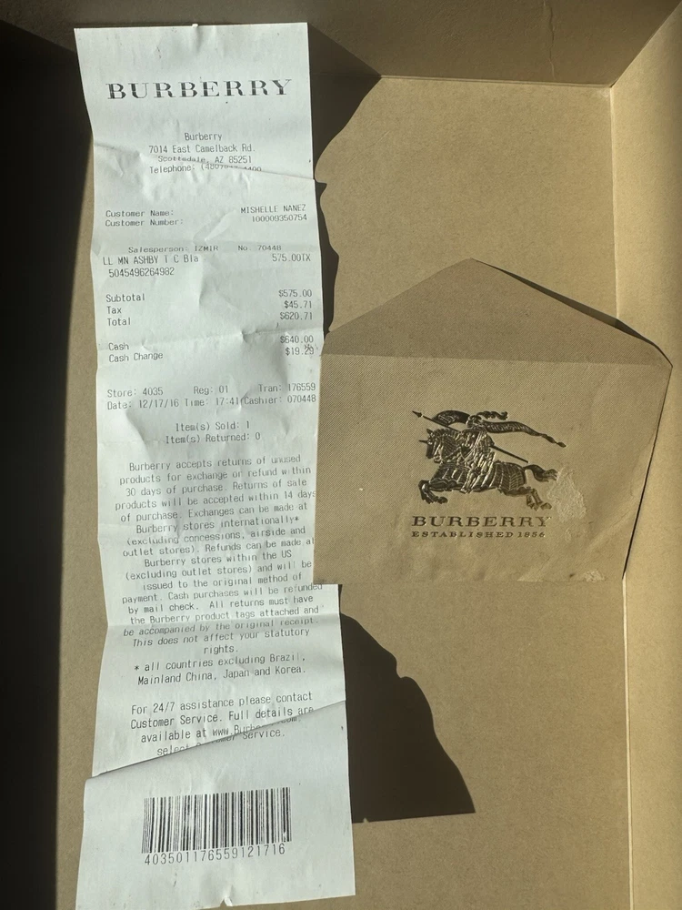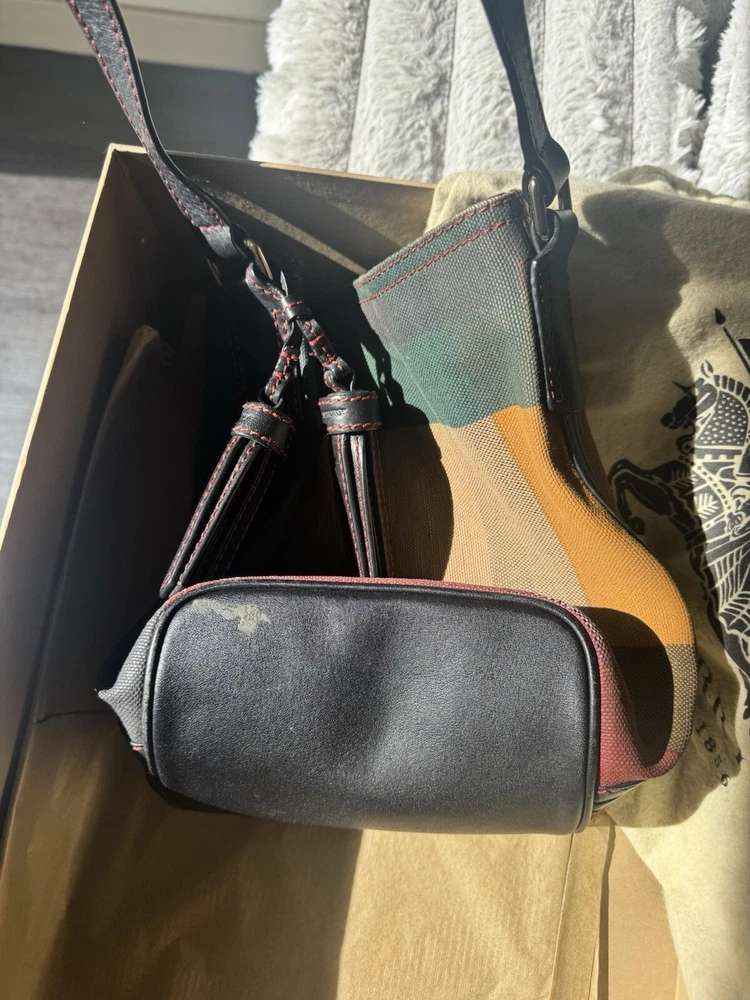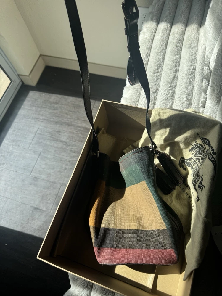 Burberry women’s side bag. Purchased at Scottsdale fashion square 100% authentic I have original everything the card the receipt all of it. Very good condition and letting go for a GREAT price does not get used and has been sitting for a couple years now. Message me !