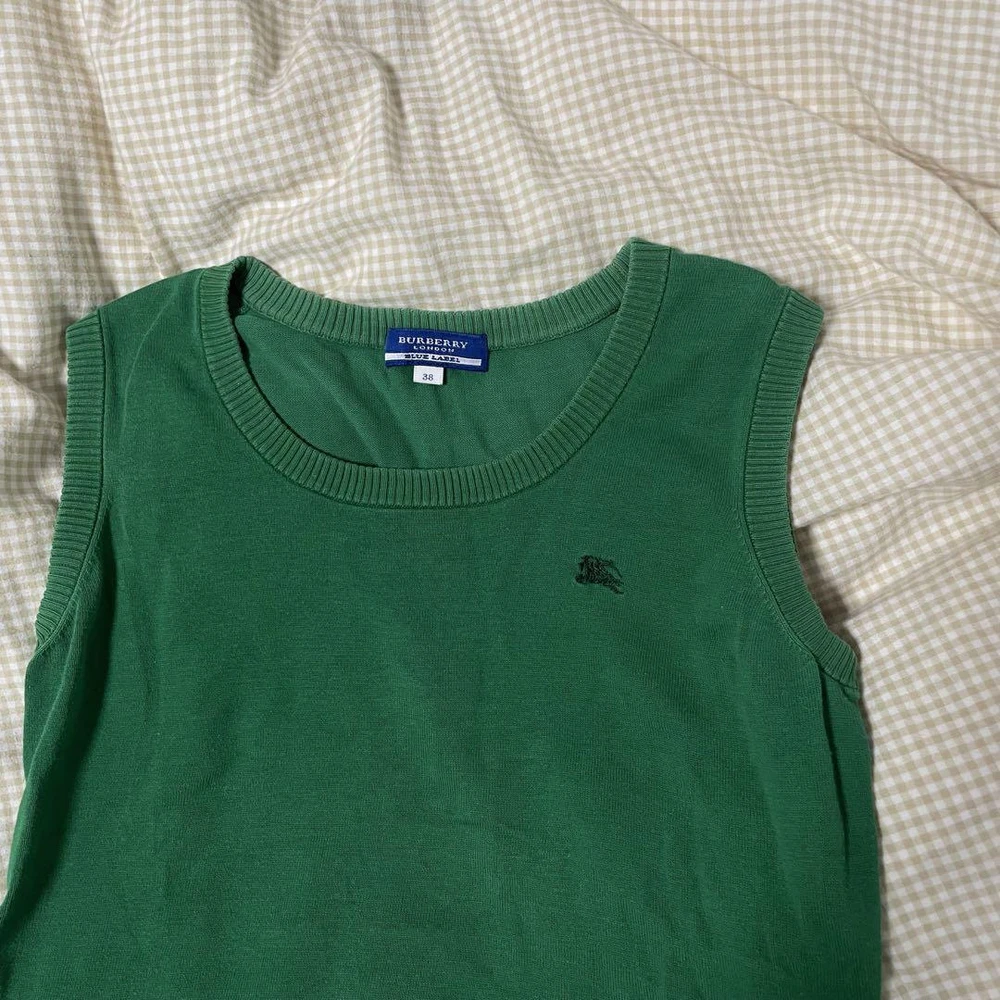 Burberry Sleeveless Knit Top Size 38 Green Crew Neck Spring/Summer Key Features **Burberry Sleeveless Knit Top** - **Brand:** Burberry - **Product Type:** Sleeveless Knit Top - **Size:** 38 - **Color:** Green - **Design:** Sleeveless - **Material:** Knit - **Neckline:** Crew Neck / U-Neck - **Season:** Spring/Summer This stylish Burberry sleeveless knit top is perfect for your spring and summer wardrobe. The vibrant green color adds a fresh touch, while the comfortable knit material ensures a great fit. Ideal for layering or wearing on its own, this top combines luxury with casual elegance. Specifications Brand Burberry Country Japan Product Description Item Title Burberry Sleeveless Knit Payment Supports managed payments Please pay within 5 days after auction is finished. About Us We are located in Japan. It's our pleasure to make you happy by proposing our recommend item. If you have any questions or request about items, please feel free to ask us. International Buyers - Please Note: -Import duties, taxes, and charges are not included in the item price or shipping charges. These charges are the buyer's responsibility. -Please check with your country's customs office to determine what these additional costs will be prior to bidding/buying. -These charges are normally collected by the delivering freight (shipping) company or when you pick the item up - do not confuse them for additional shipping charges. -We do not mark merchandise values below value or mark items as - gifts - The US and International government regulations prohibit such behavior. Thank you for your understanding.