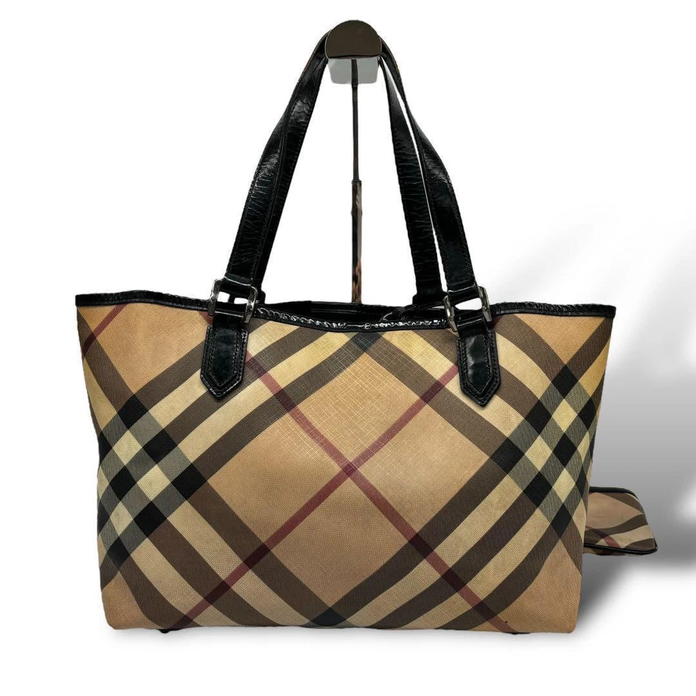 Burberry Tote Bag A4 Pvc Leather Mega Check With Pouch