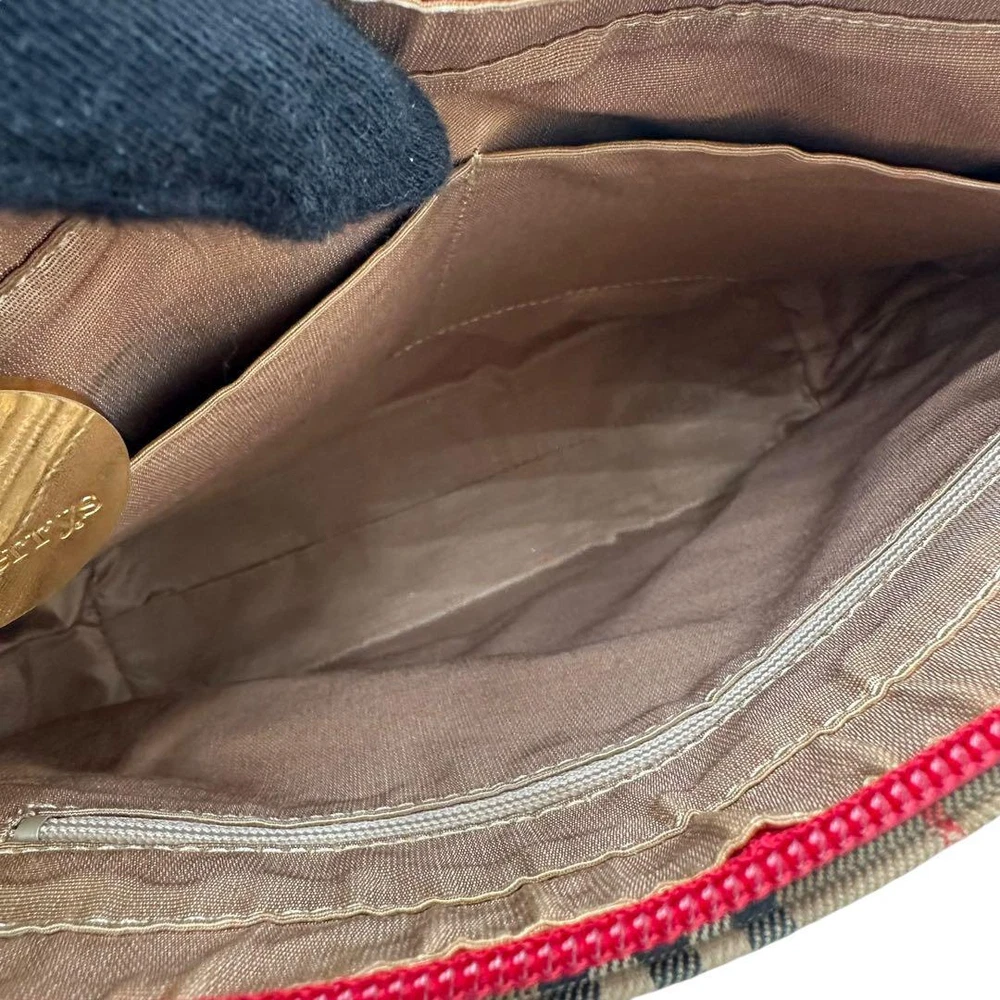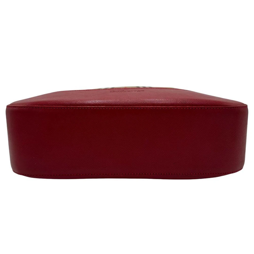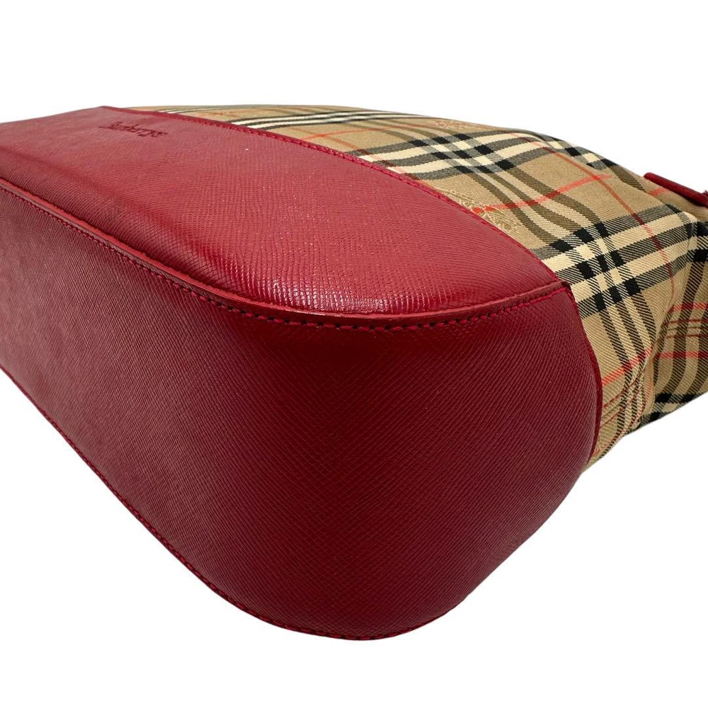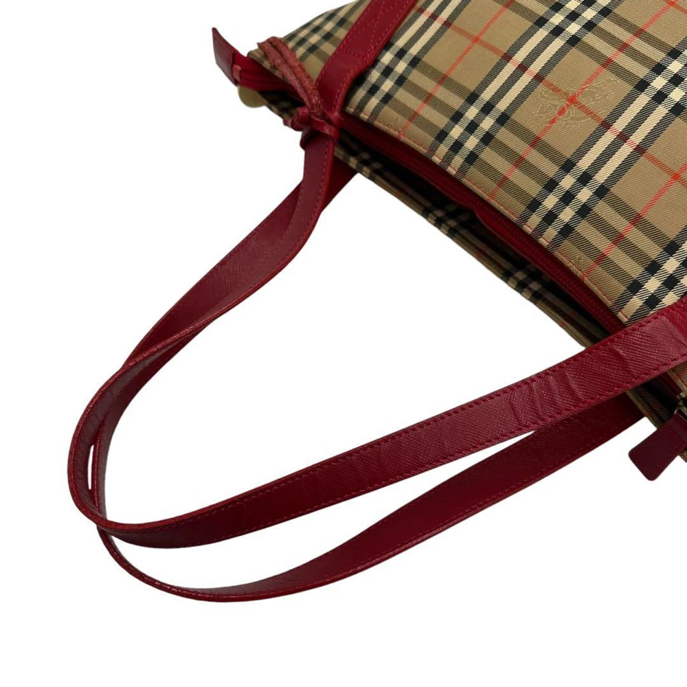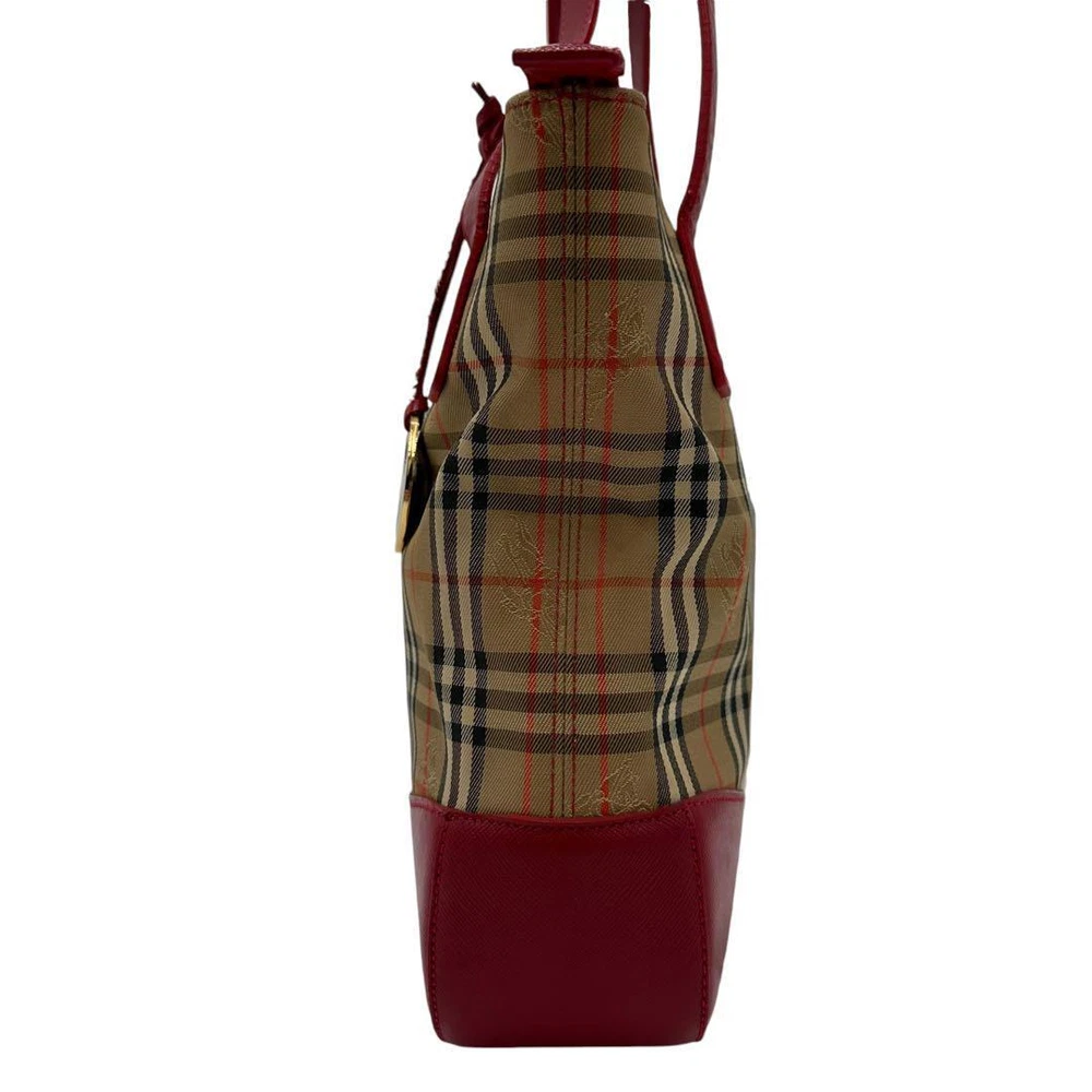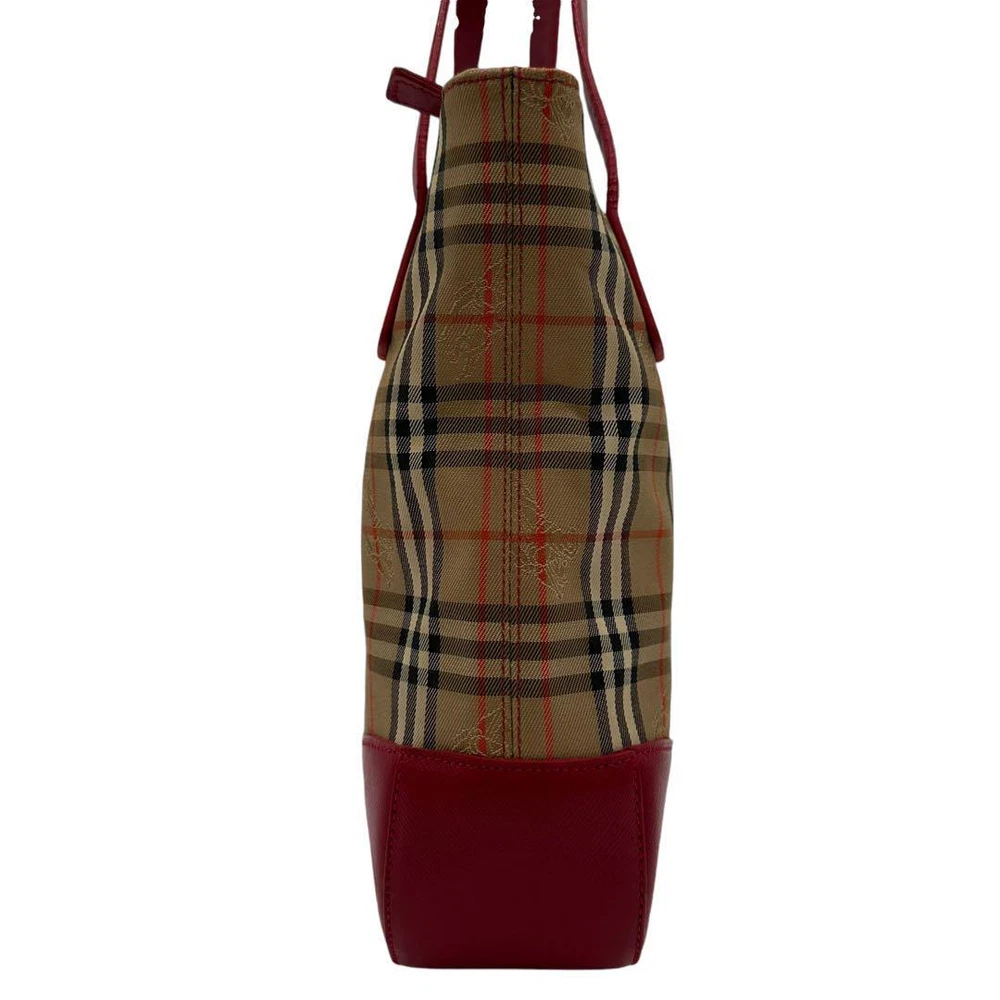 Burberry Tote Bag Handbag Nova Check Force Leather Red