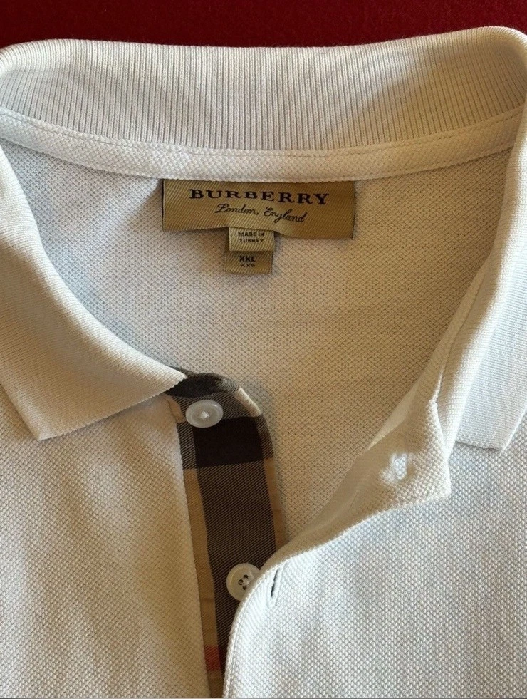This product is a pre-owned Burberry white polo shirt in size XXL. Made for men, this regular fit polo exudes elegance and sophistication with its classic design and renowned Burberry brand. Perfect for casual or formal occasions, this polo shirt is a versatile staple in any man's wardrobe. Made from high-quality materials, this Burberry polo shirt is sure to deliver both style and comfort for the modern gentleman.