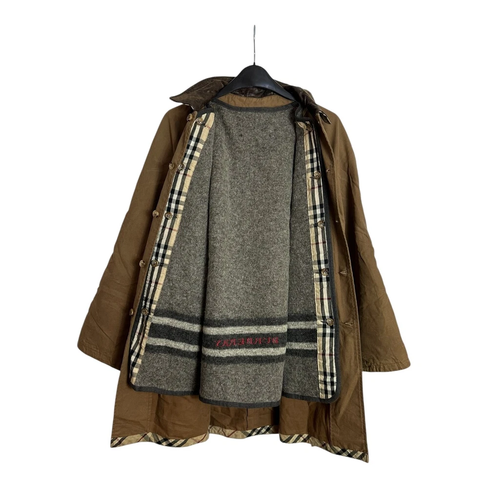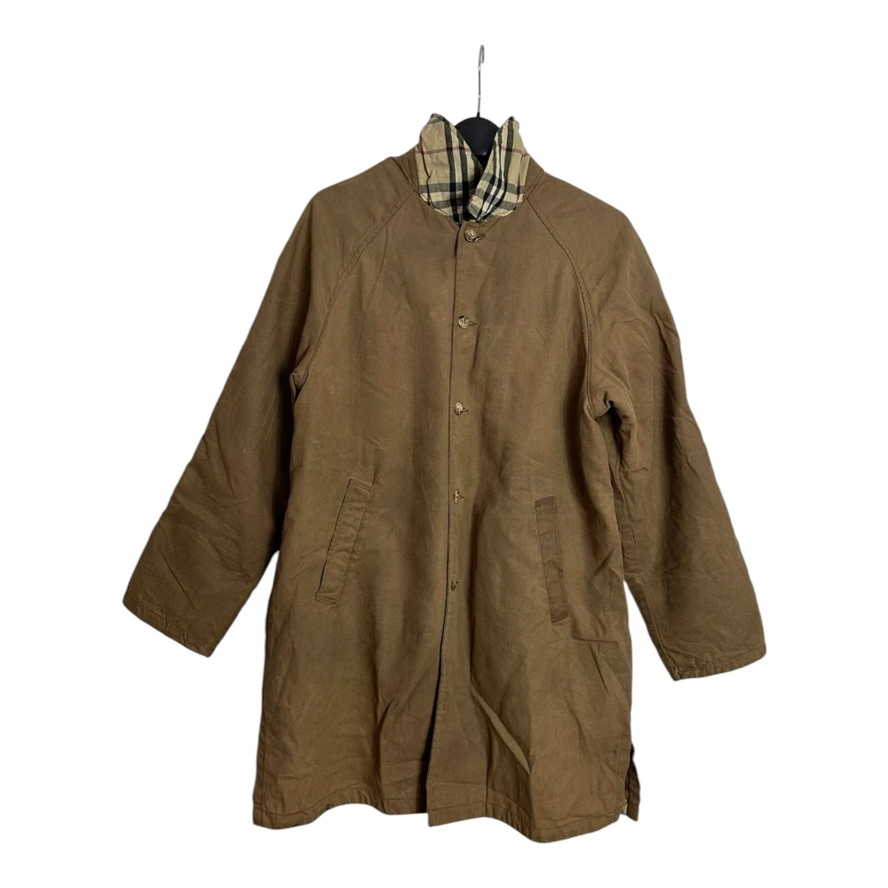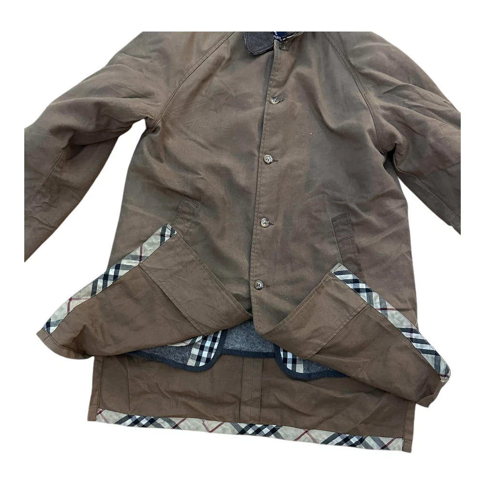 Burberry Women's Jacket Brown UK 12 M Nova Check Wool Lining Button Up Designer Slight wear like on collar but overall good condition Measurements in photos