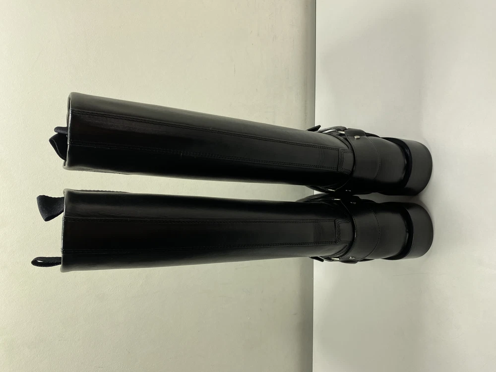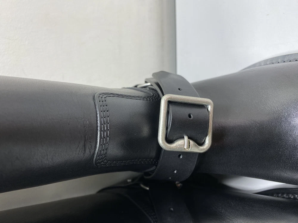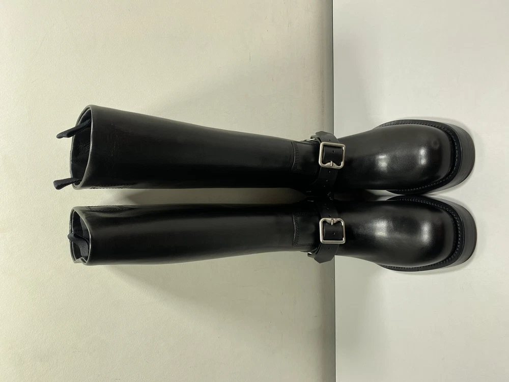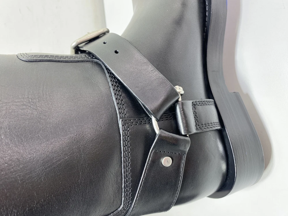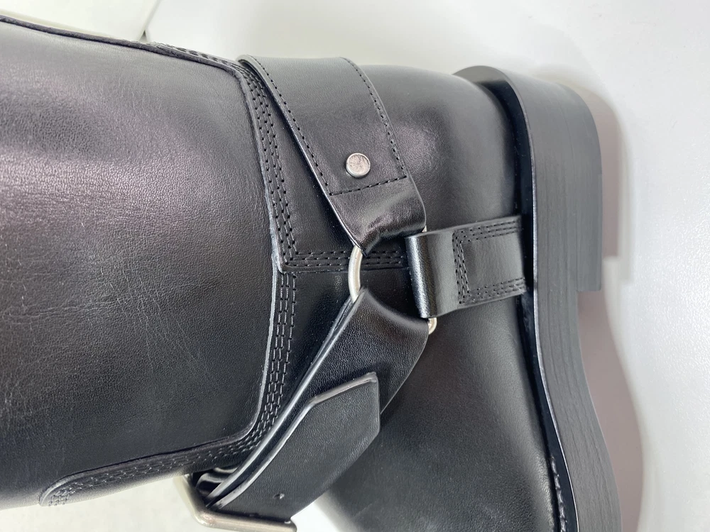 Burberry Womens Leather Saddle High Boots Size 8 Buckle Harness Round Toe Black