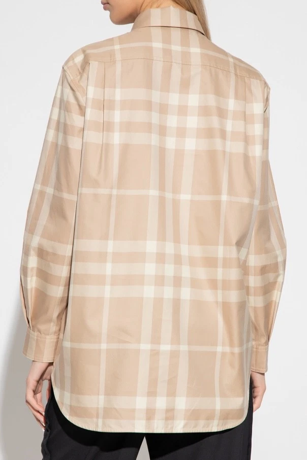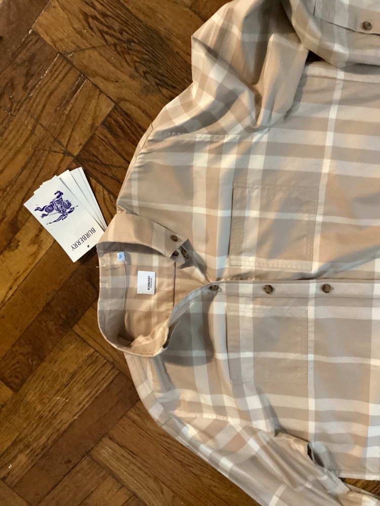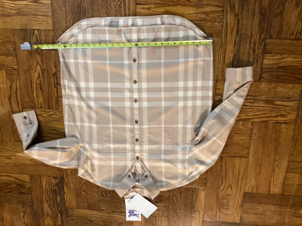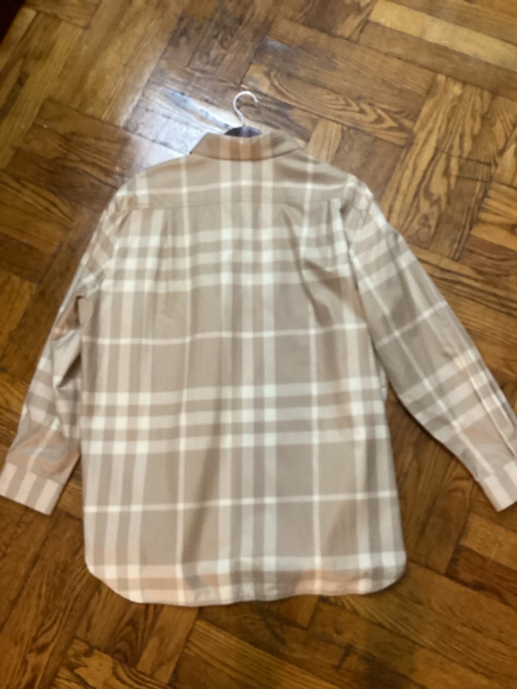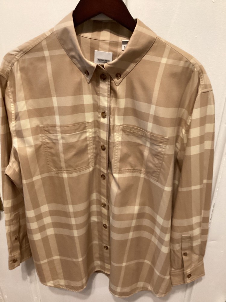 Brand: Burberry Model: Ivanna Shirt Collection: Fall 2023 Size: US 12 Color: Soft Fawn (Beige with Classic Burberry Check) Material: 100% Cotton Condition: New with Tags Original Retail Price: $830 From Burberry’s Fall 2023 collection , the Ivanna Shirt features a classic pointed collar, front button closure, long sleeves with barrel cuffs, and a flattering tailored silhouette. The iconic check is reimagined in a soft, elegant beige — perfect for transitional layering or standing on its own. 📏 Fit Notes: Size US 12 Regular fit — true to size