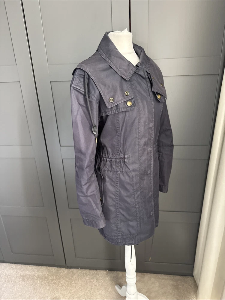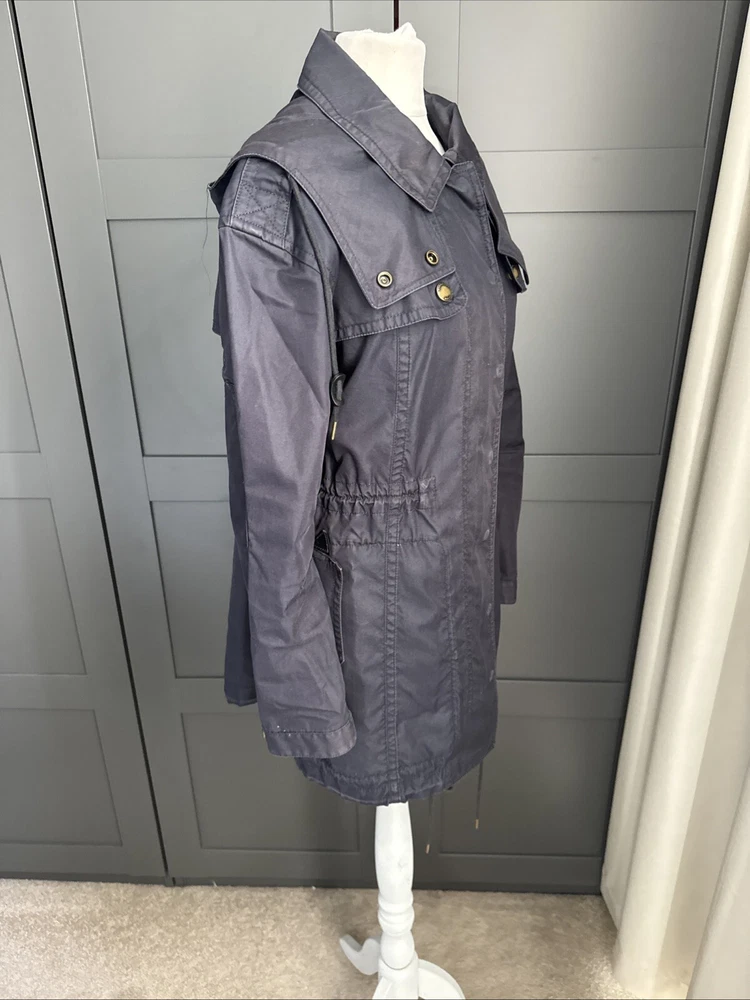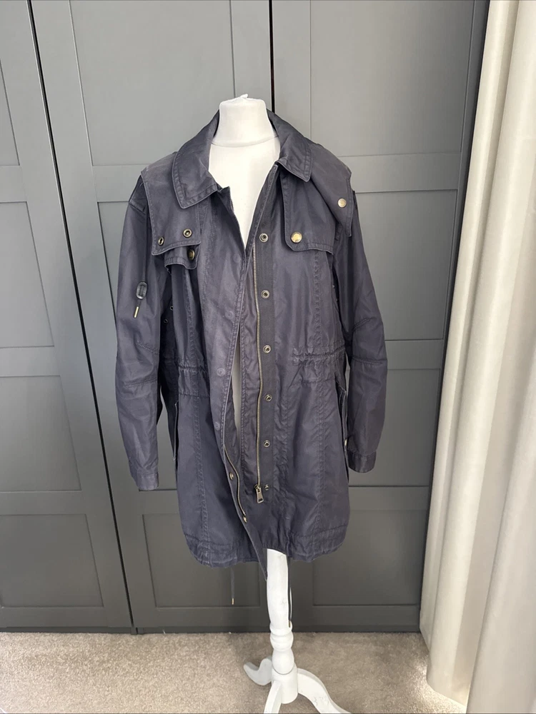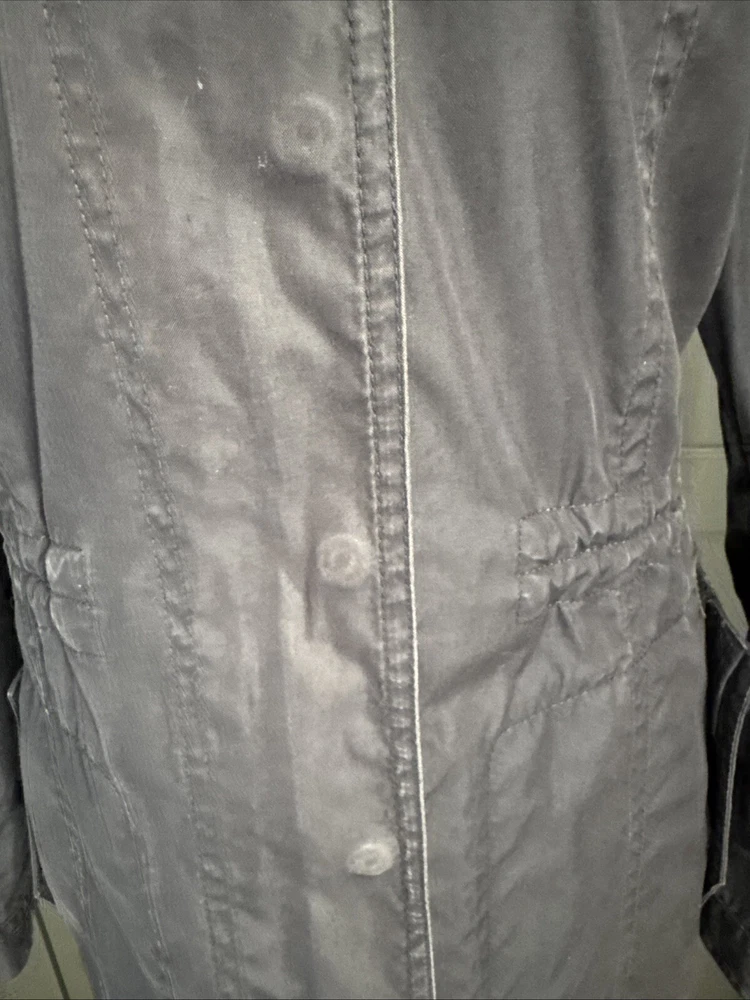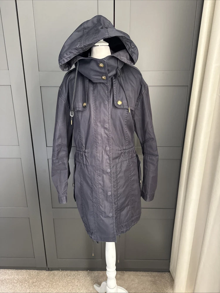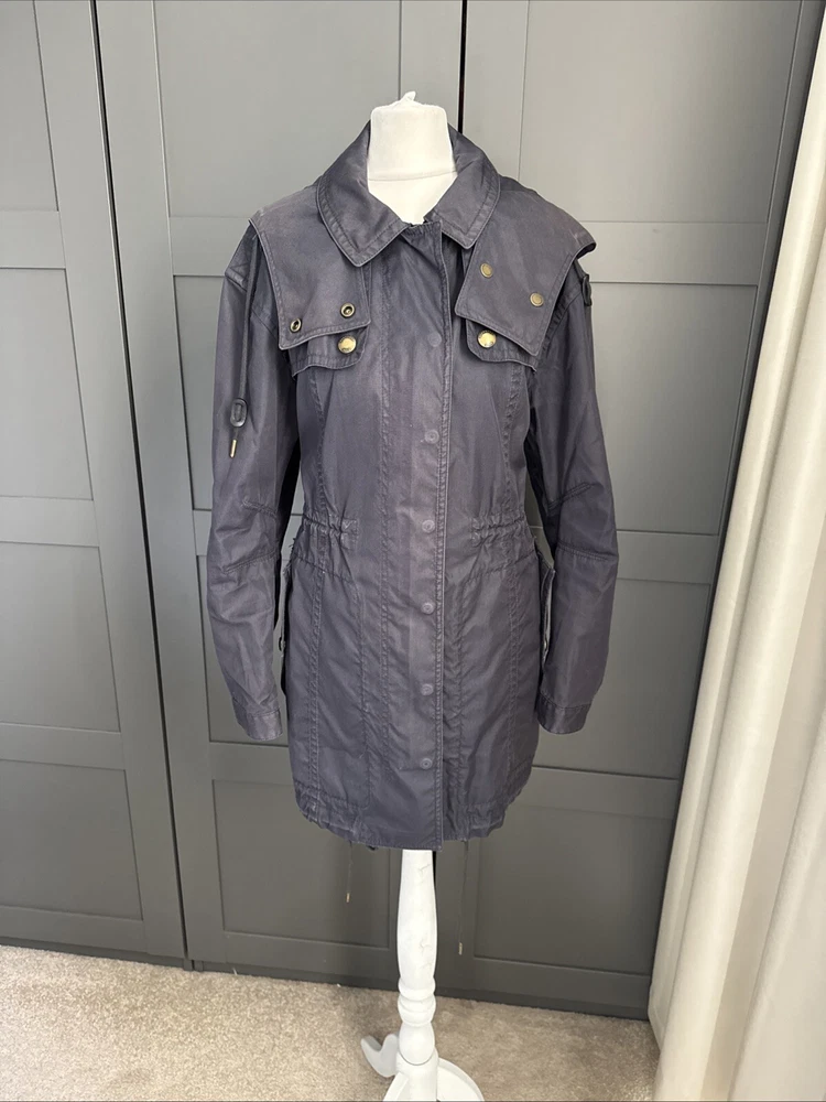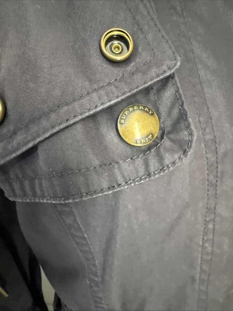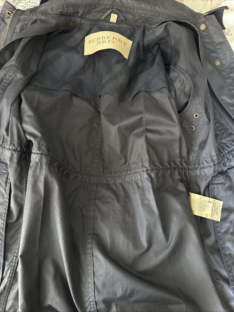Nice lightweight cotton-blend parka, vents under arms, pockets, hood, adjustable waist and hem etc, lots of lovely details. All poppers and zips have Burberry engraved Its been worn and structurally its all good but the nature of the material means its sort of faded around things, such as where the poppers are So there are no actual faults that i can see but its just been worn and colour a bit faded Shown on a size smaller mannequin but pegged to fit