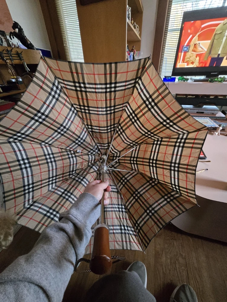 This vintage Burberry's umbrella is a must-have accessory for any fashion-forward woman. With its sleek design and high-quality construction, it's sure to be a favorite for years to come. The umbrella features a classic black color that is perfect for any outfit, and its size is ideal for staying dry during rainy days. Crafted with precision and care, this umbrella is a testament to the Burberry brand's commitment to quality and style. Whether you're using it as a fashion statement or a practical tool for staying dry, this umbrella is sure to turn heads. So why wait? Add this stunning Burberry's umbrella to your collection today!