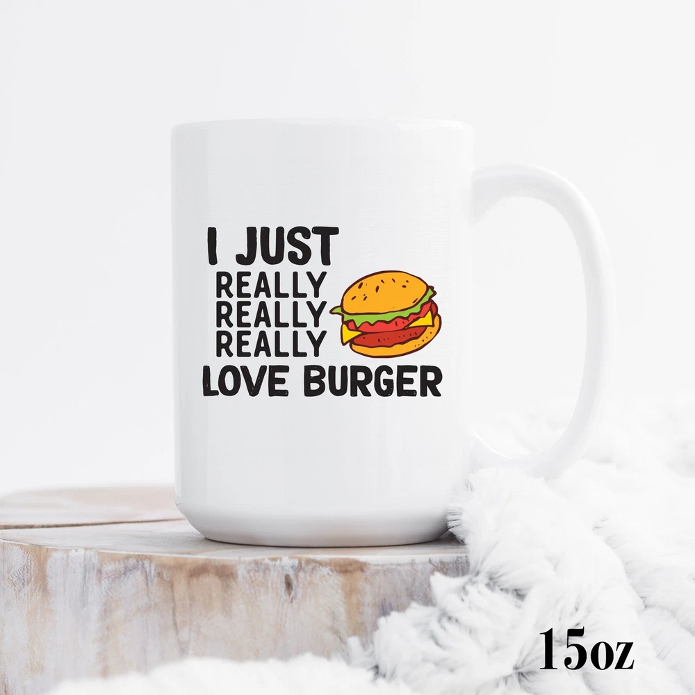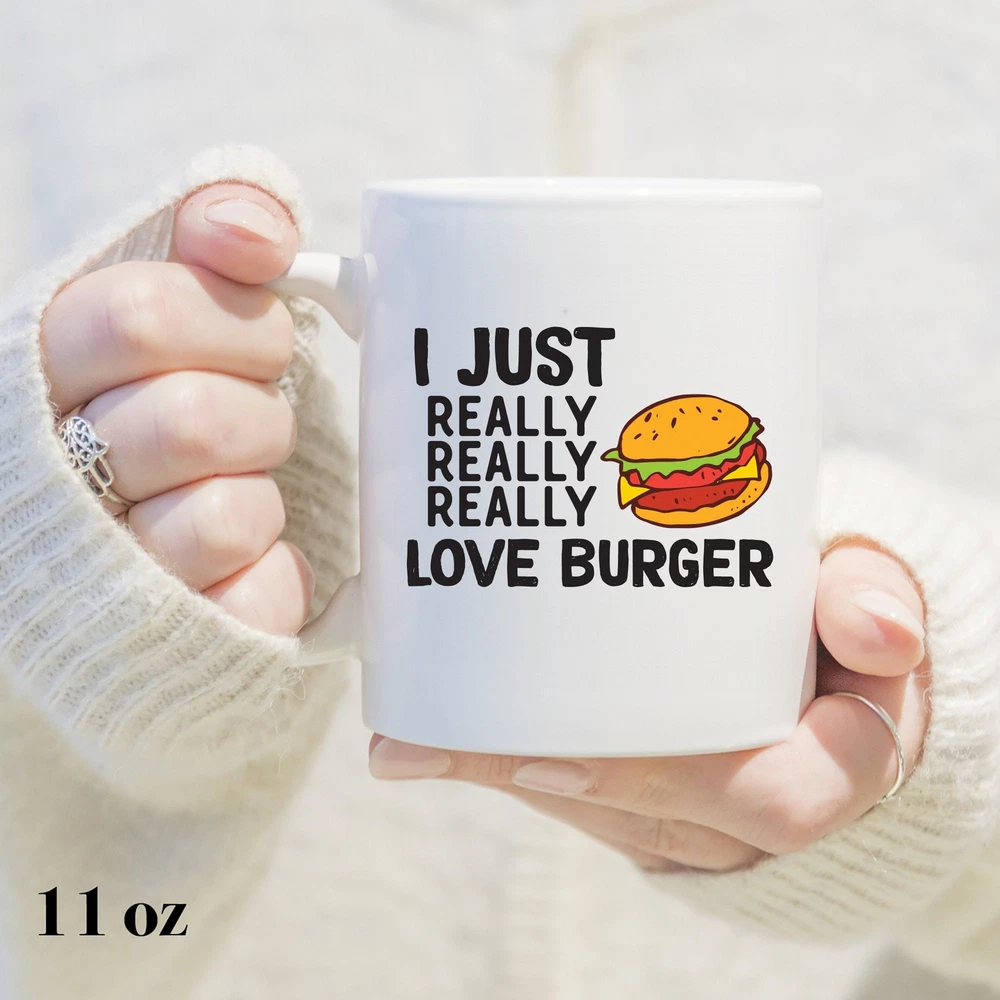 Burger I Just Really Really Love Mug Burger Mug Cute Hamburger Gift Burger Lover Product Details.. This high quality 11oz. ceramic white mug has a premium hard coat that provides crisp and vibrant color reproduction sure to last for years. Perfect for all hot & cold beverages. The highest quality printing possible is used. It will never fade no matter how many times you wash it. Material: 100% Ceramic. Print both sides. Dishwasher and Microwave Safe. High Gloss + Premium White Finish. Printed in the U.S.A. Personalized & Custom. We support personalized and custom mug to add custom, when placing an order, you can add notes to the "order note" in shipping address section. Also you can contact us directly via message. Shipping Info. Ready to ship in 1 to 2 business days, All products are made-to-order and proudly printed in the United States. Shipped by USPS and DHL, You will receive your order in 5-7 days. Replace & Refund. All products are defective during shipping broken, chipped will be replaced free of charge. You are not satisfied with the product, we will refund 100% money to you. If any other issues arise, please do not hesitate to message, we would be more than happy to assist you.