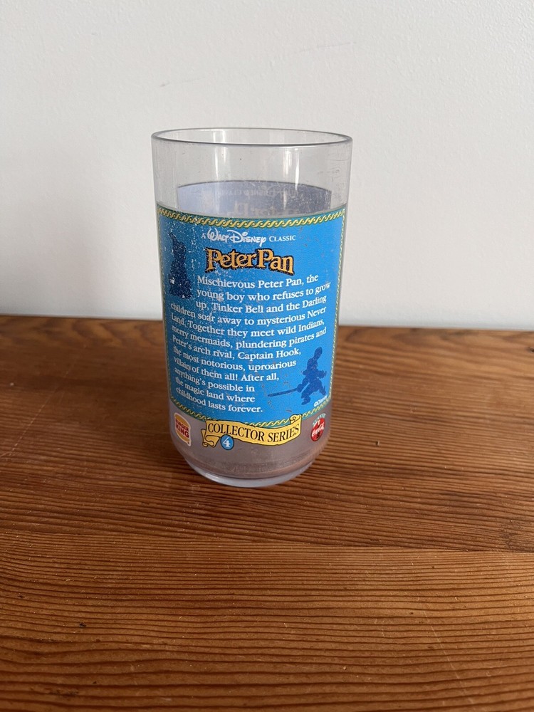 This vintage Burger King Peter Pan collector glass from 1994 is a nostalgic gem! Despite some expected scratches and fading from years of use, it’s a fantastic piece for Disney or fast-food memorabilia fans. The design still pops, and it’s a fun conversation starter. Perfect for collectors who appreciate retro items with character! Check the photos for details—great addition to any collection.