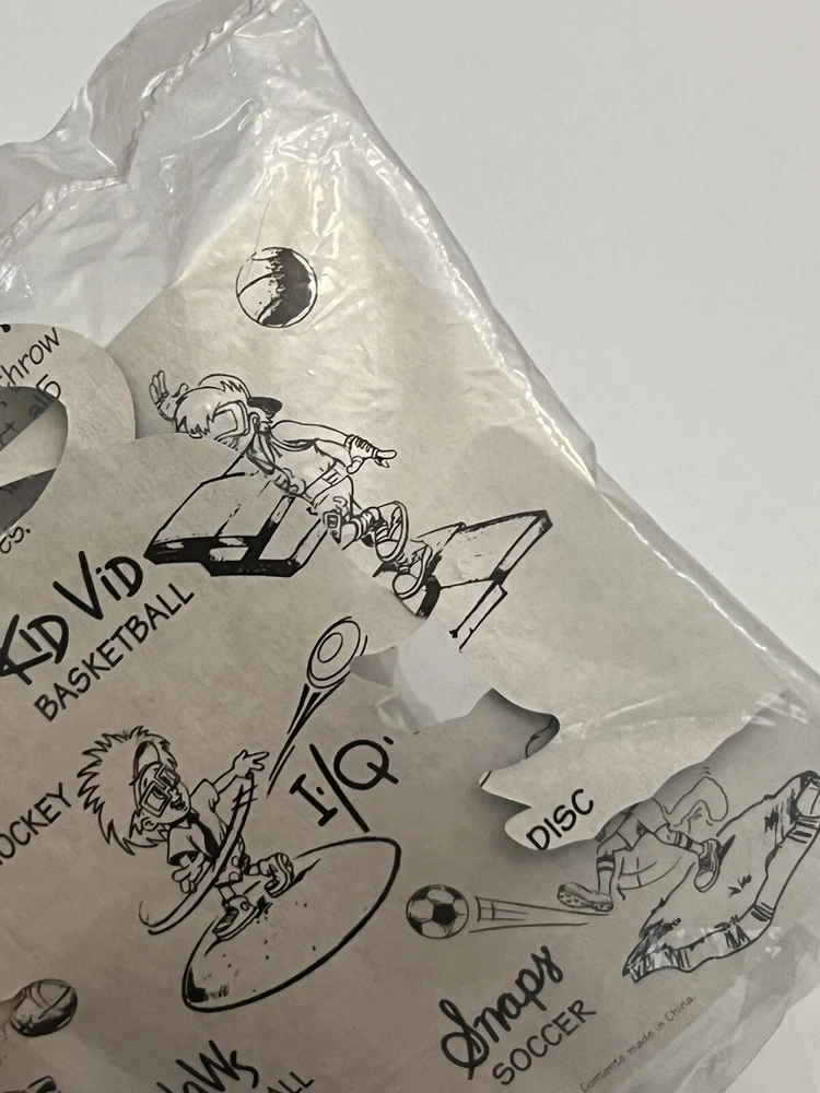 1994 All Star Sports Kids Burger King Kid's Meal Toy I.Q. Kid Throwing Frisbee. Note: the insert has come loose; shown in photo! Thank you for stopping by!