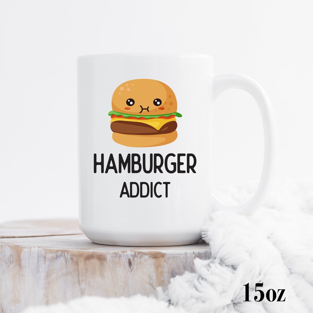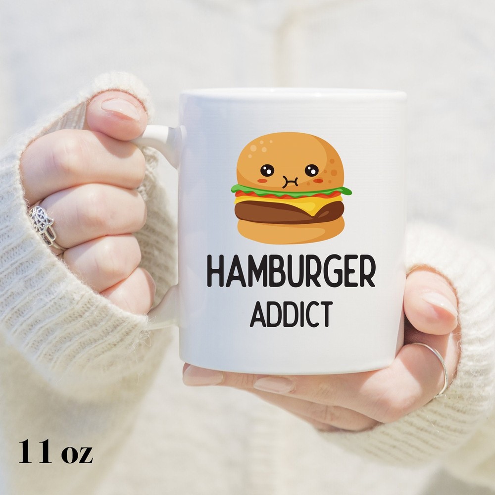 Hamburger Addict Mug Hamburger Mug Cute Hamburger Gift Hamburger Lover Mug Product Details.. This high quality 11oz. ceramic white mug has a premium hard coat that provides crisp and vibrant color reproduction sure to last for years. Perfect for all hot & cold beverages. The highest quality printing possible is used. It will never fade no matter how many times you wash it. Material: 100% Ceramic. Print both sides. Dishwasher and Microwave Safe. High Gloss + Premium White Finish. Printed in the U.S.A. Personalized & Custom. We support personalized and custom mug to add custom, when placing an order, you can add notes to the "order note" in shipping address section. Also you can contact us directly via message. Shipping Info. Ready to ship in 1 to 2 business days, All products are made-to-order and proudly printed in the United States. Shipped by USPS and DHL, You will receive your order in 5-7 days. Replace & Refund. All products are defective during shipping broken, chipped will be replaced free of charge. You are not satisfied with the product, we will refund 100% money to you. If any other issues arise, please do not hesitate to message, we would be more than happy to assist you.