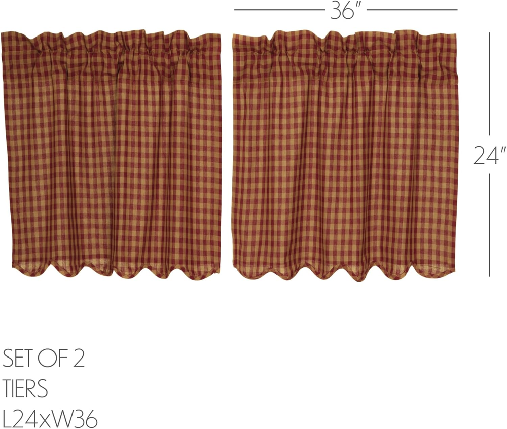 Store New Arrivals Add to Favorite View Feedback Contact Burgundy Check Primitive 24"X36" Tier Pair Red Rod Pocket Cotton Kitchen Window Curtains Description Item model number 6104 Style Modern Weave Type Plain Number of Items 2 Pattern Checkered Country of Origin India Package Weight 0.45 Kilograms Theme Country,Rustic Opacity Light-filtering Unit Count 2.0 Count Room Type Kitchen Product Dimensions 24"L x 36"W Curtain pleat Versatile Material Cotton Top Style Rod Pocket Seasons All Season Lining Description Fully lined with soft white fabric Included Components 2 x Panel Closure Type Rod pocket Curtain Form Window Tier Curtain Water Resistance Level Not Water Resistant Item Weight 12.8 ounces Compatible with Rod Size 3.25 Inches Hanging Method Rod Pocket Color Burgundy Global Trade Identification Number 00841985081291 Recommended Uses For Product Indoor Fabric Type Cotton Product Care Instructions EASY CARE: Machine wash on gentle and tumble dry on low. Iron safe. Rod pocket for easy hanging. Size 36"W x 24"L (Pack of 2) CLASSIC COUNTRY TIER SET: Includes two 24 by 36 inch tier curtains with a 3.25 inch rod pocket and hidden hanging loops for easy installation. Tier or cafe curtains are a great way to add privacy while still allowing unfiltered sunlight to come through from above. LIGHT FILTERING: Lined with white cotton to provide additional privacy while filtering out harsh outside light and preventing fading. PRIMITIVE DECOR: Burgundy and tan check is a sophisticated and classic choice that updates your home with a touch of rustic country charm, while creating a sense of warmth and retreat as you create precious family memories. EASY CARE: Machine wash on gentle and tumble dry on low. Iron safe. Rod pocket for easy hanging. SCALLOPED EDGING: The rustic look of burgundy red and tan checkered plaid is softened by a lightly scalloped edging for a balanced, cozy look. Dark khaki tan and burgundy red checkered plaid add a relaxed, primitive feel to your windows. Our Burgundy Check Scalloped Tier Set measures 24 inches long by 36 inches wide and includes a softly scalloped edge. The rustic country pair of short, tier-style curtains is constructed with 100 percent cotton for easy care and is machine washable and iron safe. The curtains are fully lined with a soft white fabric to offer increased protection from the sun and fading. Includes a 3.25 inch rod pocket for easy hanging. ABOUT US We offer the best prices around on high quality products. Our E-store includes media such as books, movies, music and games while offering electronics, toys, sporting apparel, clothing, tools, general home, garden items and more. SHIPPING We are always working hard to ensure your package arrives as soon as possible. Please understand that some factors like weather, high postal traffic, and the performance of shipping companies are outside of our control. We offer free shipping to the lower 48 states and ship within 2 business days of payment, usually sooner. We do not accept P.O. Boxes. Please provide a physical address. For shipping outside of the continental USA, we only use eBay's Global Shipping Program.The item is shipped to KY and then sent to the rest of the world. International customers are responsible for all duties and taxes. Continue to check out in order to calculate costs for shipping the item to your country. Messages regarding eBay's Global Shipping Program MUST be directed at eBay EXCLUSIVELY. RETURNS We offer a 30-Day Return Policy on items which you are not completely satisfied with. You have the option for a full-refund or an exchange of the item. No returns are available on items shipped outside of the USA. PAYMENT We accept PayPal. CONTACT US This page content is yet to come Please ad us to your favorite seller and visit again later Thank You CUSTOMER SATISFACTION We try our very best to make sure every customer is completely satisfied. If there's a problem, message us! We're happy to help. WE ACCEPT Copyright © 2021 AutoDS. | All Rights Reserved