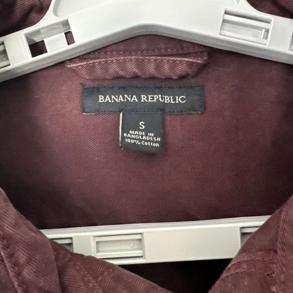Wrap up in timeless style with the Banana Republic Burgundy Jacket, a perfect addition to your wardrobe for the cooler seasons. Crafted from high-quality cotton with a soft, yet durable corduroy fabric type, this coat ensures both comfort and longevity. Its solid burgundy hue offers a versatile look that pairs well with any outfit, whether you're out for a casual stroll or traveling on business. The coat features a classic collared design with a point collar style, giving it a refined and sharp appearance. A quilted accents add a touch of texture and flair. Practical elements include a zip closure, convenient pockets, and a machine washable garment care for easy maintenance. Ideal for fall, spring, and winter, this short winter jacket keeps you looking sharp and feeling cozy. Height: 27 inches Chest Length: 20 inches Sleeve Length: 22 inches