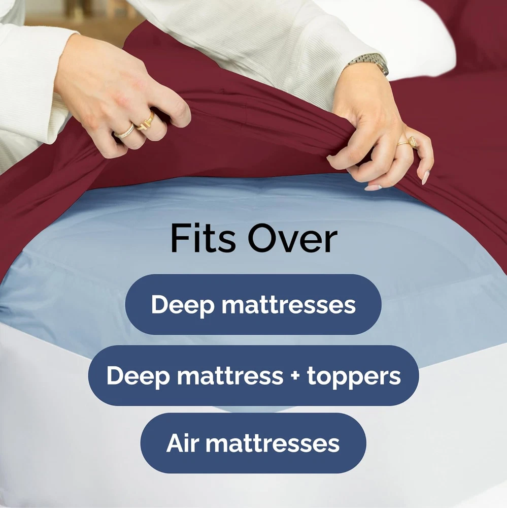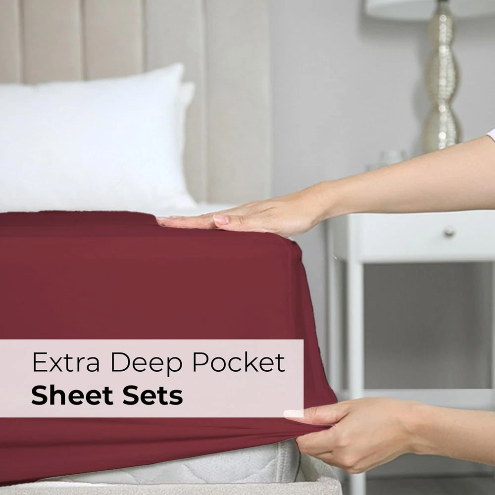 Fast Shipping Great Customer Support Satisfaction Guaranteed DESCRIPTION Shipping Shipping Shipping All domestic packages are shipped for Free (Unless other shipping method was selected during the checkout) Most items ship and arrive much sooner than the estimate delivery date. Usually within 2-3 days from payment. However, we have longer estimates to compensate for the occasional delay or supply chain breakdown. We do not accept P.O. BOXES - PLEASE PROVIDE A PHYSICAL ADDRESS Return Return Return In the event that you would like to return your purchase, we allow returns that are processed within the defined return date (the return date is to be found in the return policy/shipping and handling section) Please contact us for a return authorization and the return shipping address. Payment Payment Payment PayPal is our preferred method of payments it's the quickest, easiest and most secure way to pay for your goods or services online. PayPal offers buyer and seller protection should there be a problem. If you do not have a PayPal account, to get started and buy your first item with us is very easy. Simply click on the 'Buy It Now' button and follow the eBay checkout steps. Select PayPal as the payment method you then will be given the chance to enter your card details in to PayPal's secure checkout in order to pay for your order. Once the payment has been made, you will then be given the opportunity to make your own PayPal account to make paying for your items in the future very easy. Should there be a problem with payment please do let us know. Feedback Feedback Feedback Customer satisfaction is very important to us. If you have any problem with your order,please contact us and we will do our best to make you satisfied, please do not leave a negative feedback before we resolve your problem. We guarantee that your issue will be solved quickly. As long as you are happy with your purchase of , please leave us a positive feedback. Your feedback is very important to us it affects our search placement on eBay. We will leave a positive feedback for you in return automatically once we receive your feedback. Contact Us Contact Us Contact Us If you have any queries, please contact us via ebay. We usually respond within 24 hours on weekdays. Thank you for visiting our ebay store! EXTRA DEEP POCKET SPLIT KING SHEETS / EXTRA DEEP FITTED SPLIT KING SHEETS: These bed sheets are for very deep pocket mattresses. They fit any mattress with pockets that are 18, 20, 21, 22 and 24 inches deep. There's stretchable elastic around the extra deep fitted sheet which stretches for a nice tug around your mattress. Perfect for extra tall & large mattresses. Rest assured these oversized sheets will stay on tight & stay in place! 7 PIECE SHEET SET: This bed sheet set comes with 4 pillowcases total all with beautiful decorative embroidery design on each pillow case. The pillow cases have enclosure designs. This bedding set will accommodate your extra thick mattress perfectly. GREAT FOR DOUBLE PILLOW TOP MATTRESS: These bed sheets are perfect for mattresses with a 3 inch or 4 inch topper on top, memory foam toppers, big mattress pads, pillow tops, foam toppers, big foam toppers, pillow top mattresses and memory foam. These sheets will not come off. MICROFIBER: These are the softest type of microfiber bed sheets we have created. Super soft with a light feel. Not crisp like cotton. If you're accustomed to cotton sheets and you've never tried microfiber sheets we recommend you give these a try. They're even softer than cotton! DIMENSIONS & SIZES: Flat Sheet 113 wide and 102 long. Fitted sheet 39 wide and 80 long with 21 inch pockets (has elastic so it can stretch). All four pillow cases are oversized 20 x 40 inch. Burgundy Extra Deep Split King Sheet Set 7 Piece Cooling Wrinkle Free Click here to see description Fast Shipping Great Customer Support Satisfaction Guaranteed DESCRIPTION Shipping All domestic packages are shipped for Free (Unless other shipping method was selected during the checkout) We ship within two business days of payment, usually sooner Standard FREE shipping takes between 3-5 business days Expedited shipping takes between 2-3 business days Overnight shipping takes between 1-2 business days We do not accept P.O. BOXES - PLEASE PROVIDE A PHYSICAL ADDRESS We Ship Globally using ebay's GSP, the item is sent to a logistic center in KY and shipped from there to the rest of the world. International customers are responsible for all duties and taxes Contact your local authority for questions related to the amount of duties or taxes you will be responsible for Return In the event that you would like to return your purchase, we allow returns that are processed within the defined return date (the return date is to be found in the return policy/shipping and handling section) Please contact us for a return authorization and the return shipping address. Please contact us for a Return Merchandise Authorization (RMA) number. We advise you to use a reputable carrier service when returning your goods. Please pack all returns appropriately. We ship globally Via eBay's global shipping program (GSP). Thus we don't cover returns for items shipped globally. Buyers returning such items will be refunded ONLY for the item's cost and not for the shipping. please check the Voltage information and make sure it matches the one in your country. In case it's not stated in the description, do ask us. Payment PayPal is our preferred method of payments it's the quickest, easiest and most secure way to pay for your goods or services online. PayPal offers buyer and seller protection should there be a problem. If you do not have a PayPal account, to get started and buy your first item with us is very easy. Simply click on the 'Buy It Now' button and follow the eBay checkout steps. Select PayPal as the payment method you then will be given the chance to enter your card details in to PayPal's secure checkout in order to pay for your order. Once
