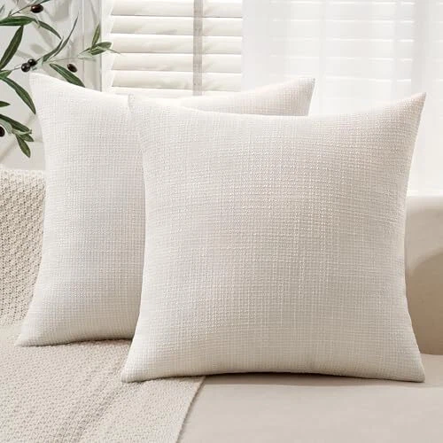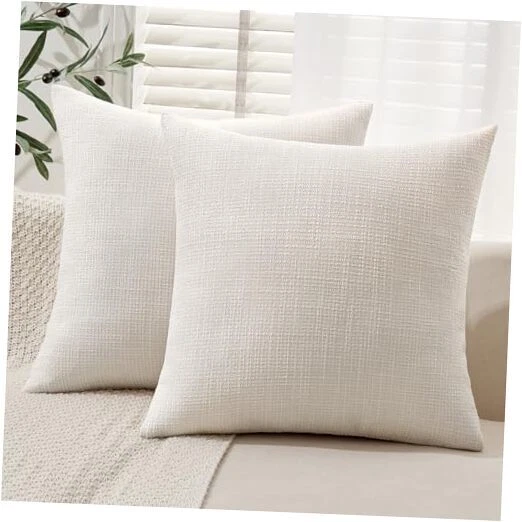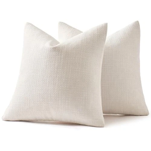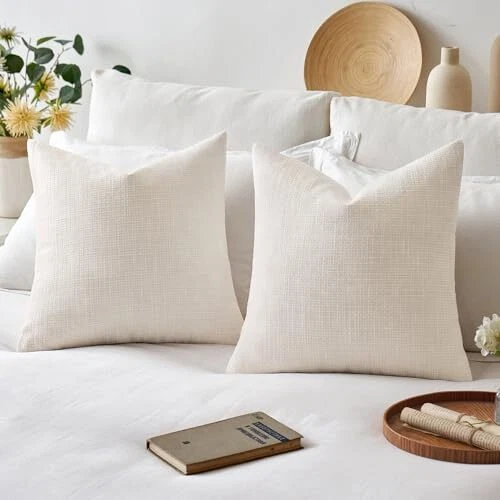 Burlap Linen Throw Pillow Covers 20x20 Inch 20" x 20" (Pack of 2) Cream White