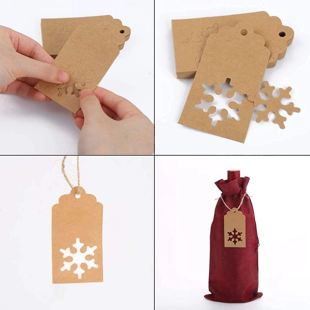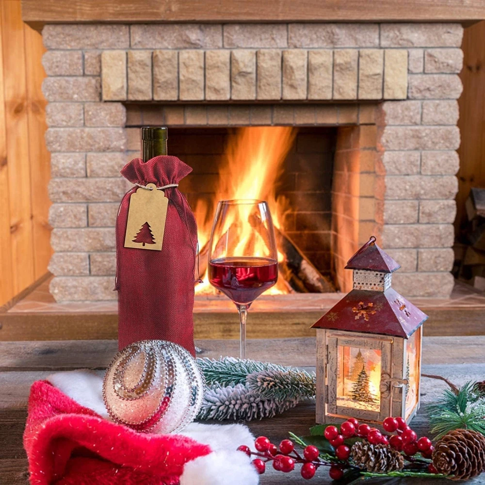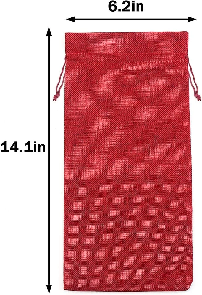 Material:Made of premium quality burlap.The natural burlap fabric materials make the burlap wine gift bags more breathable durable,reusable and eco-friendly,red wine bottle covers bring everyone to the happy warm festival atmosphere Dimension:Each burlap wine bag measures approx 36 cm x 16 cm / 14.2" x 6.3",accommodate a regular 750ml wine bottle.Each gift tag is approx 9.5 cm x 4.5 cm / 3.75” x1.77”,1 roll jute string is approx 16.4 feet enough for use Package Includes:Totally 12 PCS wine bottle bags,24 PCS gift Tags with 12 designs and 16.54 feet jute string,This tags has a blank design,you can write whatever you like on it.Tags are pre-punched with holes and convenient to use Drawstring&Festival Design:Jute wine bottle bags comes with a drawstring which makes the bag easy to close and open,convenient for storage wine bottle or other things.The Kraft paper tag design with Christmas tree,Bell,Snowflake,Stocking,Reindeer,ect Multiple use:These burlap wine bags suitable for package wine bottles and Champagne bottles,not only protect them from dust,and make it looks great.Perfect for wine bottle storage,Christmas,weddings,birthday,festivals and travel Product Description About STEFORD Christmas Burlap Wine Bags This is WHY You Choose Us ! ! ! - Material: Premium Quality Burlap,The natural burlap fabric materials make the burlap wine gift bags more breathable durable,reusable,red wine Wine Bottle Covers bring everyone to the happy warm festival atmosphere - Dimension: Each burlap wine bag is approx. 36 cm x 16 cm / 14.2" x 6.3",accommodate a regular 750ml wine bottle.Each gift tag is approx. 9.5cm x 4.5cm / 3.75” x1.77”,1 roll jute string is approx16.4 feet enough for use - Package includes: 12 Pcs wine bottle bags,24 PCS gift Tags with 12 design and 16.54 feet jute string,This tags has a blank design,you can write whatever you like on it.Tags are pre-punched with holes and convenient to use - Drawstring &Festival Design: Jute wine bottle bags comes with a drawstring which makes the bag easy to close and open,convenient for storage wine bottle or other things.The Kraft paper tag design with Christmas tree,Bell,Snowflake,Stocking,Reindeer,ect - Multiple use: This burlap wine bags suitable for package wine bottles and Champagne bottles,not only protect them from dust,and make it looks great. Perfect for wine bottle storage,Christmas,weddings,birthday,festivals and travel Perfect Christmas and Holiday Gifts & Decorations 12 Different tags with Hollow cut design ,press the hollow cut and the design will perfect showing,easy to use Comes with a drawstring which makes the bag easy to close and open,12 different tag makes it more festval Suit for Christmas,New Year,holiday celebration,parties,wedding,home,etc